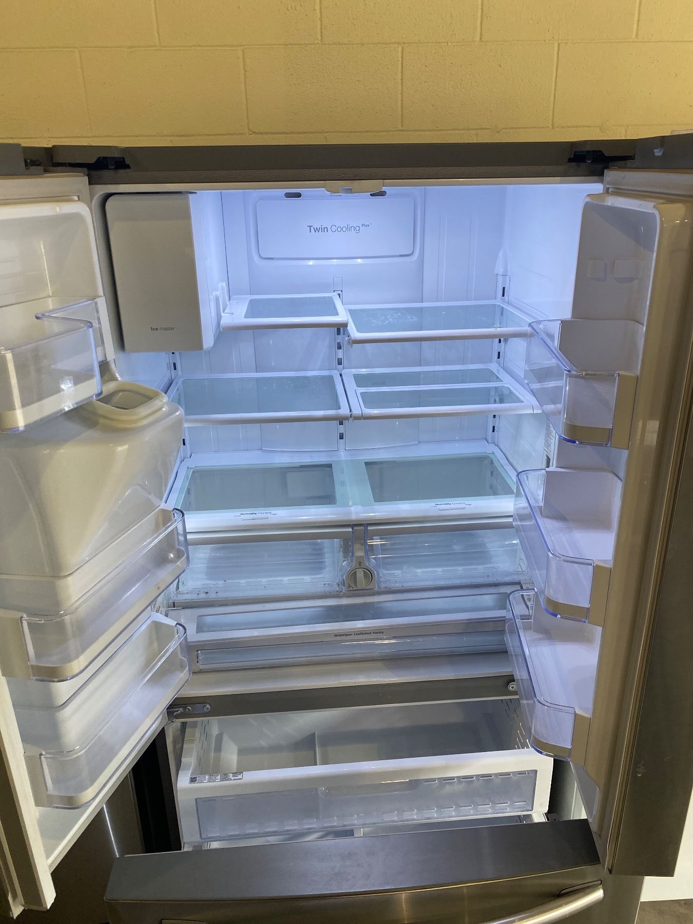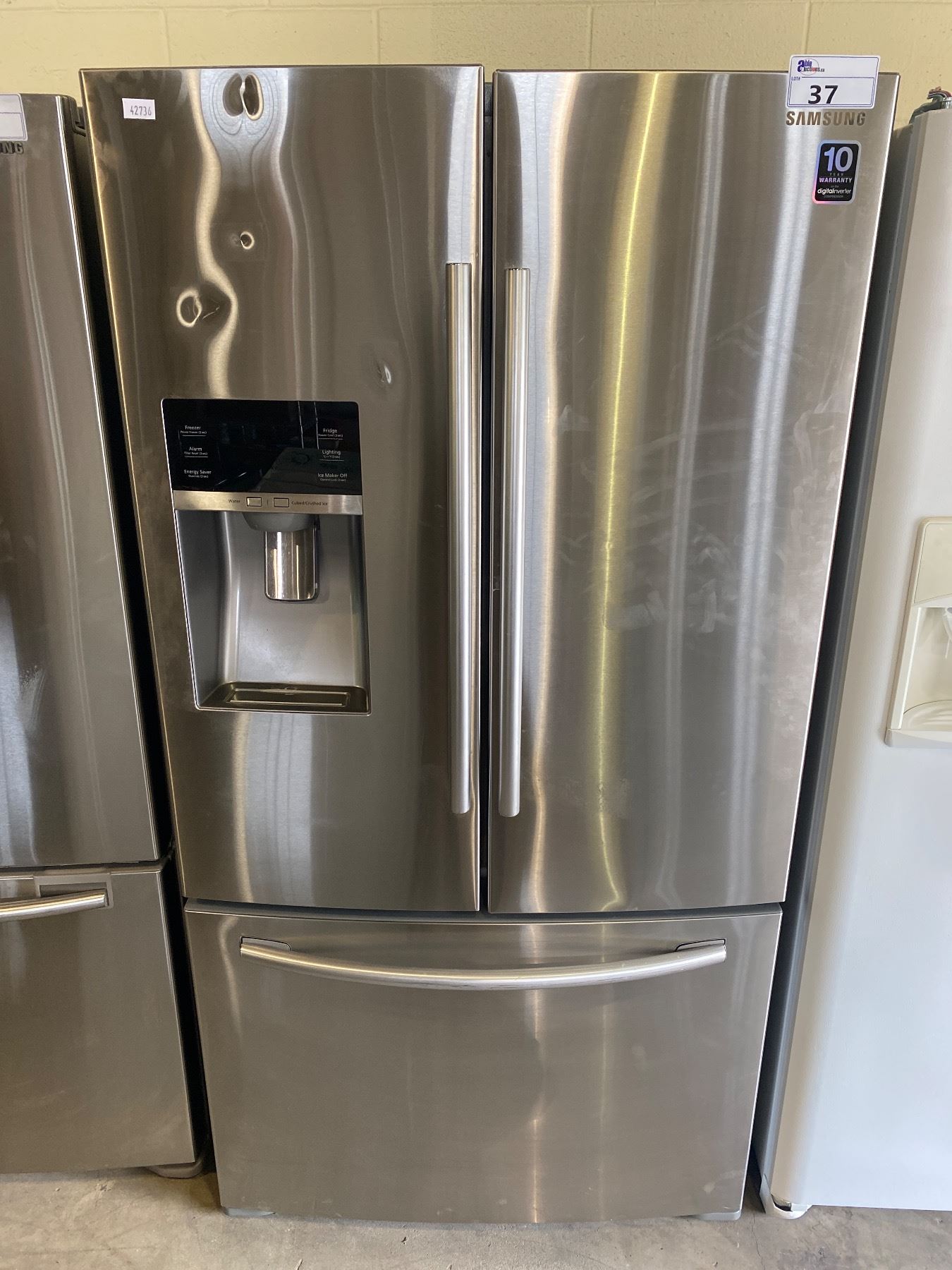 SAMSUNG STAINLESS STEEL FRENCH DOOR FRIDGE WITH ROLLOUT FREEZER & ICE/WATER DISPENSER MODEL RF23HCEDBSR VISIBLE DAMAGE