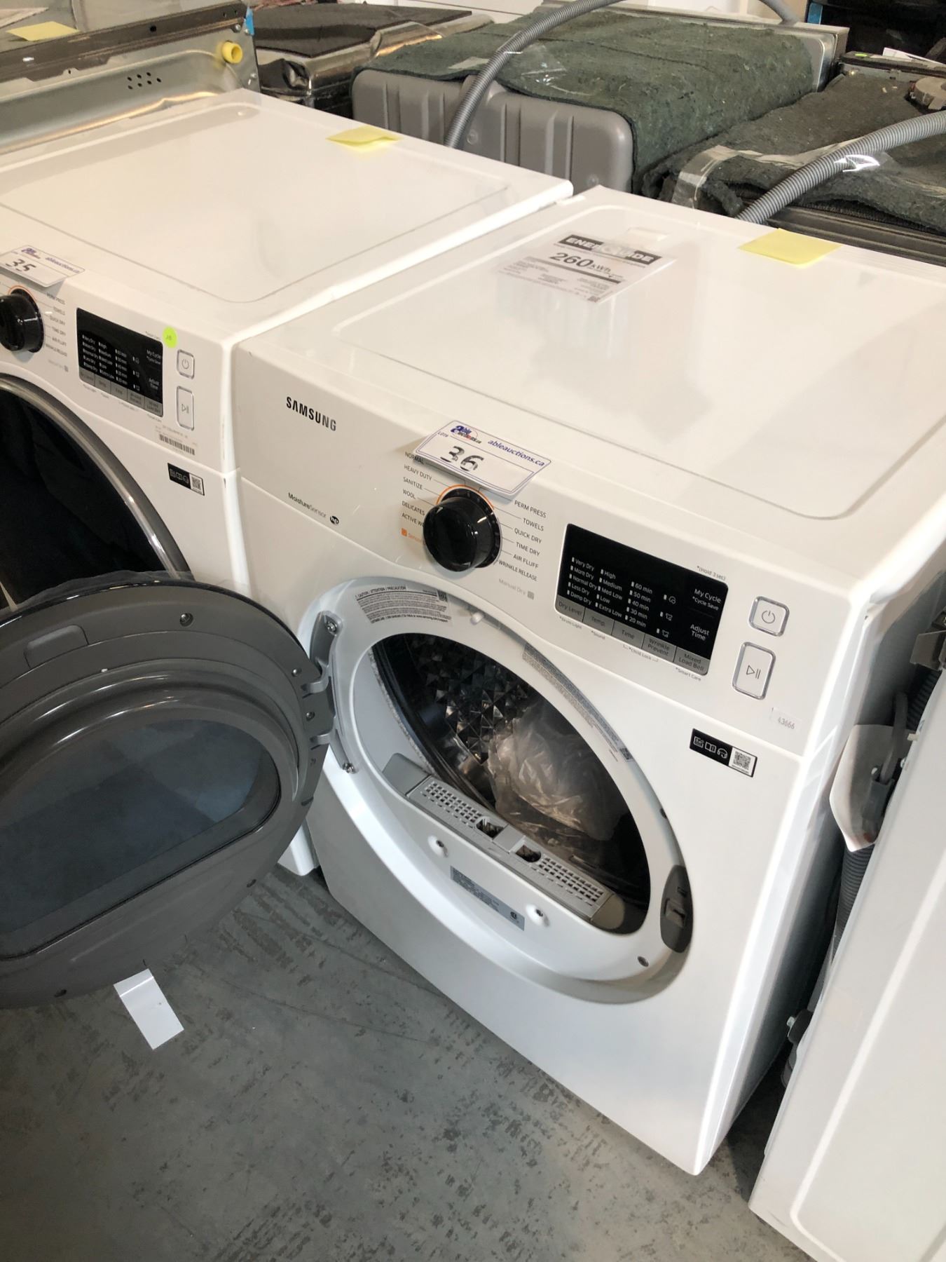 SAMSUNG WHITE DRYER MODEL DV22K6800EW/AC DENTED 24" X 25"D X 33"H TESTED WORKING PLEASE PREVIEW MAY HAVE COSMETIC DAMAGE