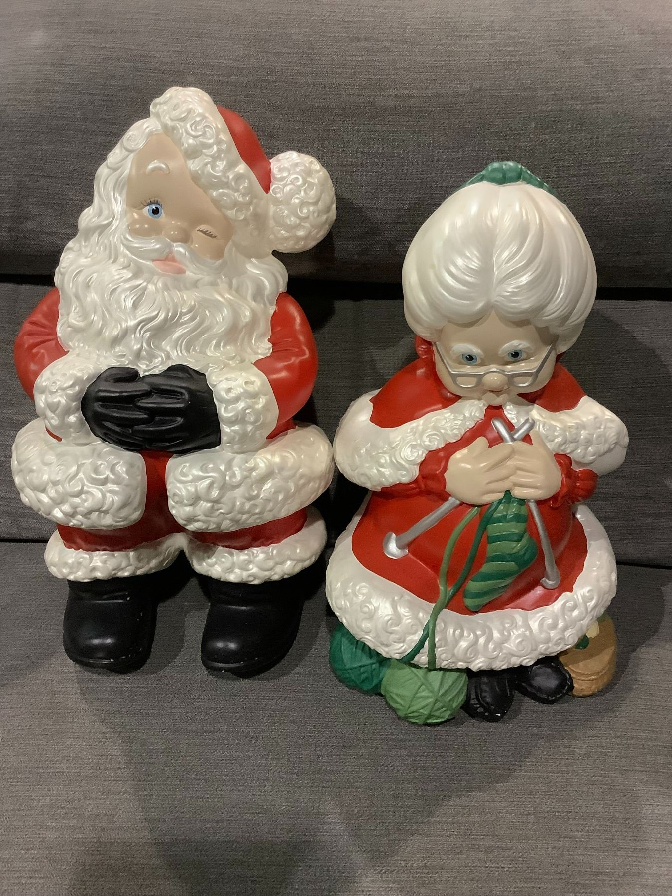 SANTA AND MRS. CLAUSE HAND PAINTED FIGURINES 15" TALL AND 13" TALL