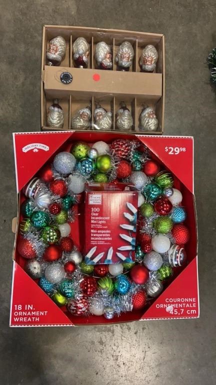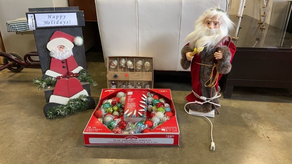 SANTA FIGURE LIGHT UP, HAPPY HOLIDAYS DIPLAY, WREATH AND SANTA LIGHTS