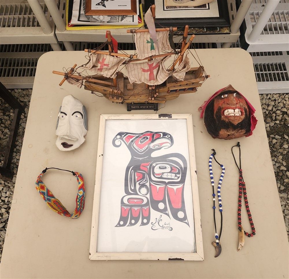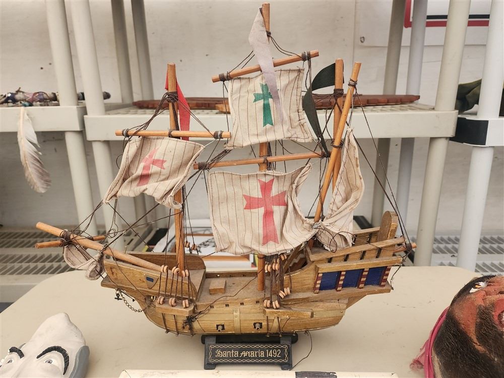 SANTA MARIA WOODEN SHIP, MASK, ART, AND BRACLETS