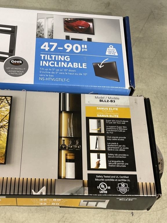 SANUS 32-80 SUPER SLIM FIXED TV WALL MOUNT AND INSIGNIA 47-90 INCH TILTING TV WALL MOUNT