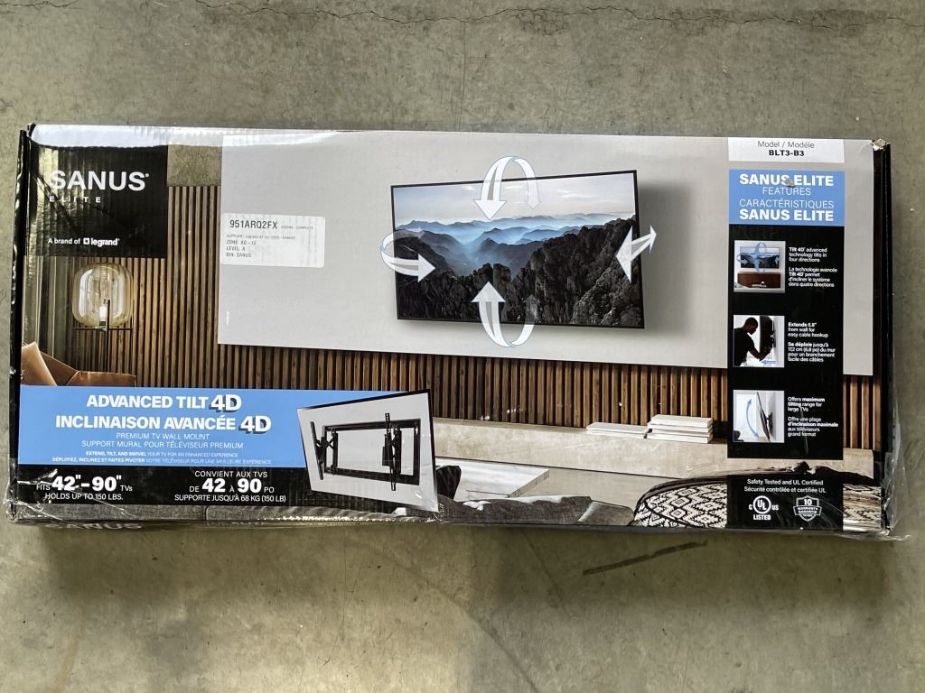 SANUS ADVANCED 42"-90" TILTING TV WALL MOUNT, RETAIL $219