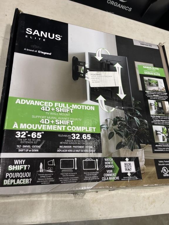 SANUS ELITE 32-IN TO 65-IN 4D FULL MOTION TV WALL MOUNT