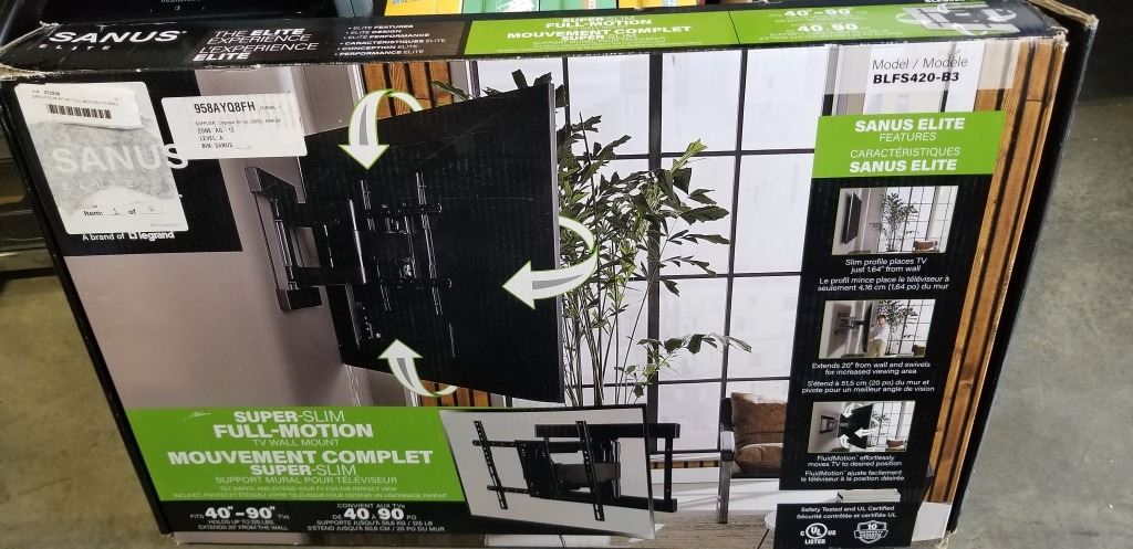 SANUS SLIM 40"-90" FULL MOTION TV WALL MOUNT