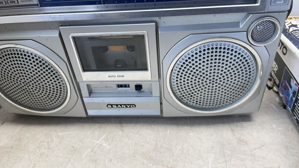 SANYO BOOMBOX WITH FOOD STRAINER AND POTS