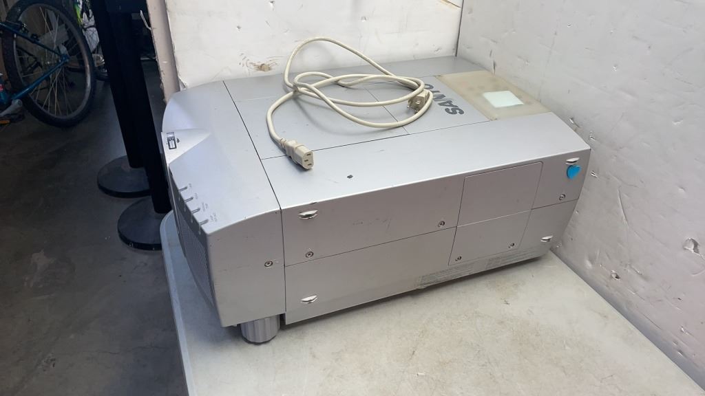 SANYO HEAVY DUTY PROJECTOR WITH LOT OF REEL TO REEL TAPES , NEW VHS BLANK TAPES AND UNTESTED DYSON C