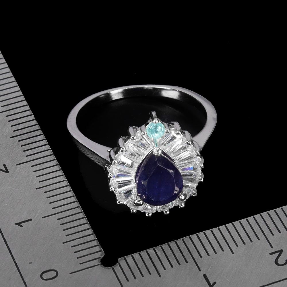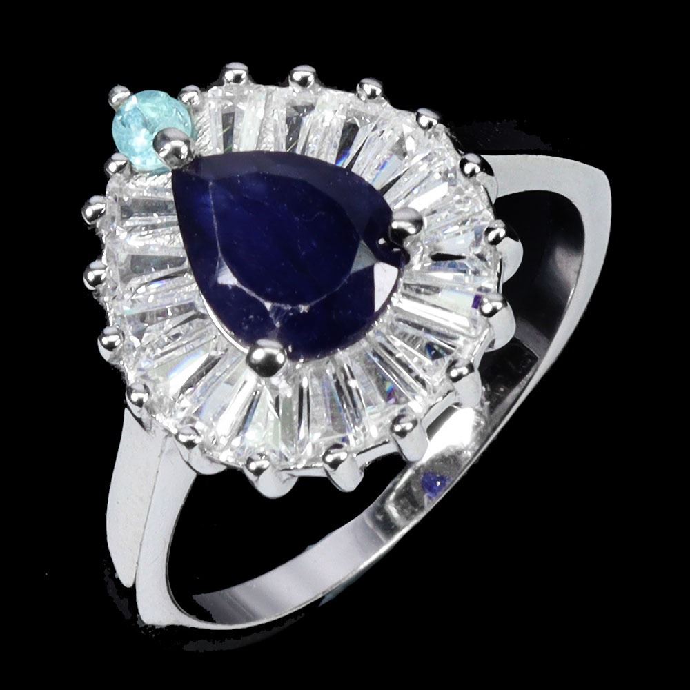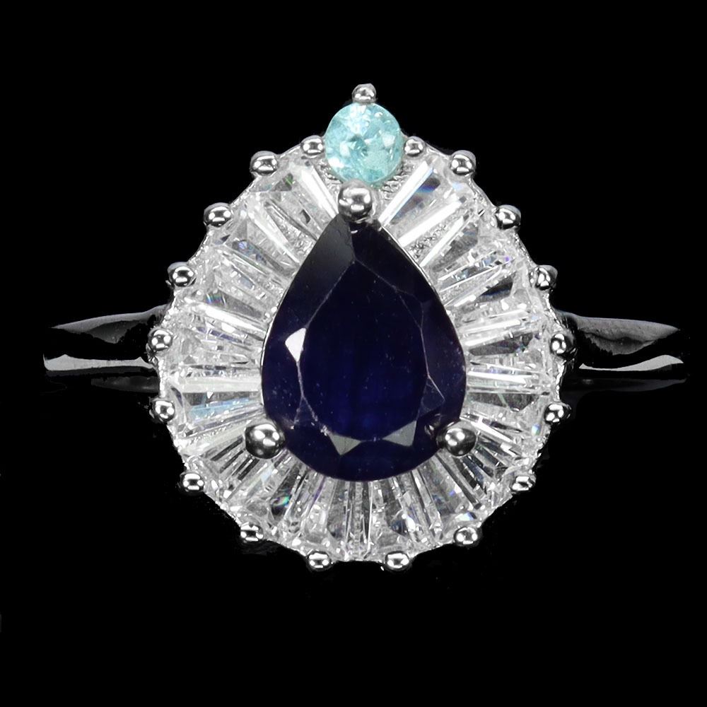 SAPPHIRE RING IN 14K WHITE PLATED GOLD OVER 925 STERLING SILVER - SIZE 7 -APPRAISED REPLACEMENT VALUE