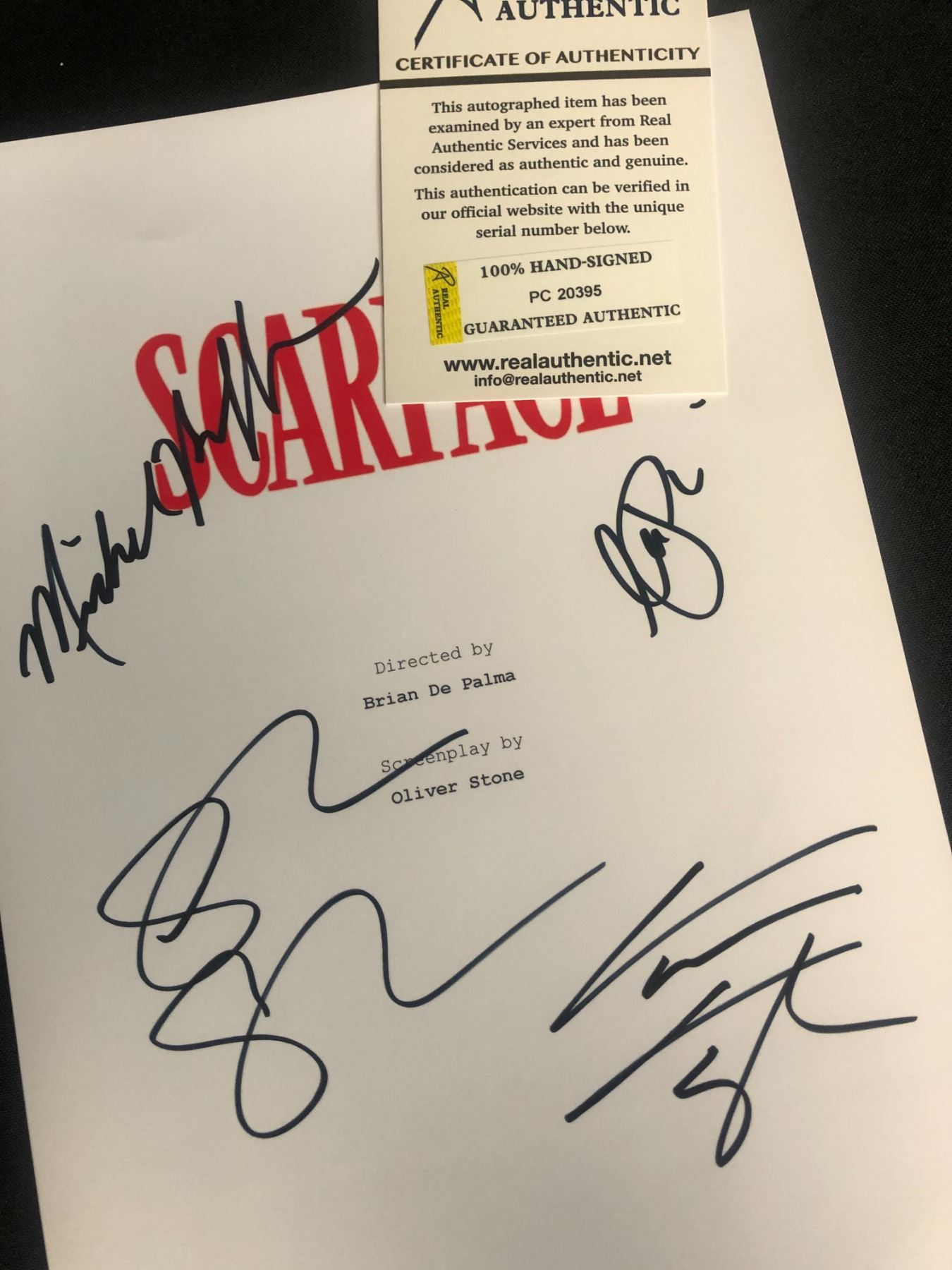 SCARFACE CAST SIGNED MOVIE SCRIPT COVER ( RA COA)