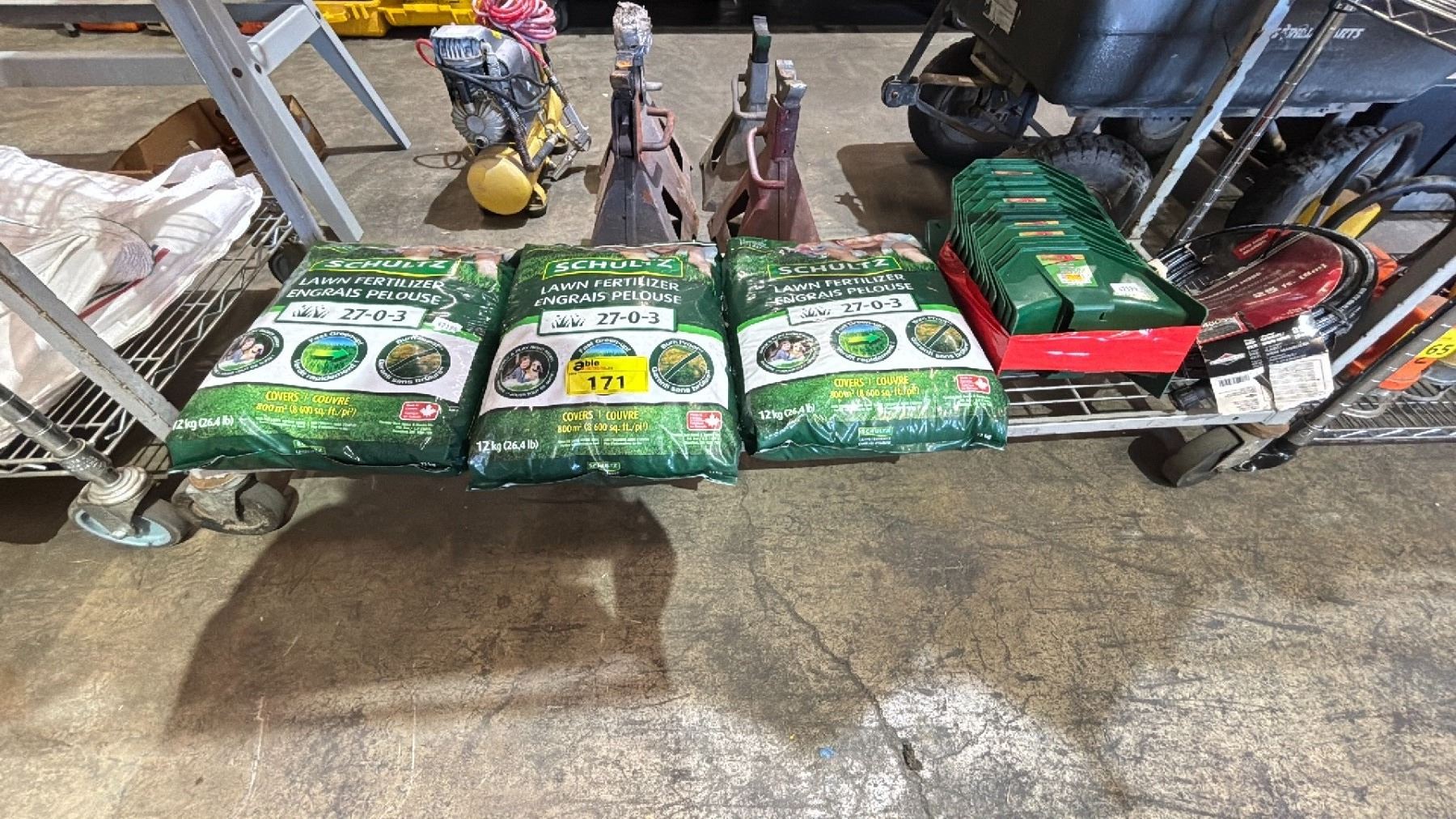 SCHULTZ 27-0-3 LAWN FERTILIZER, BOX OF WALL MOUNT HOSE HANGERS & A PRESSURE WASHER REPLACEMENT HOSE