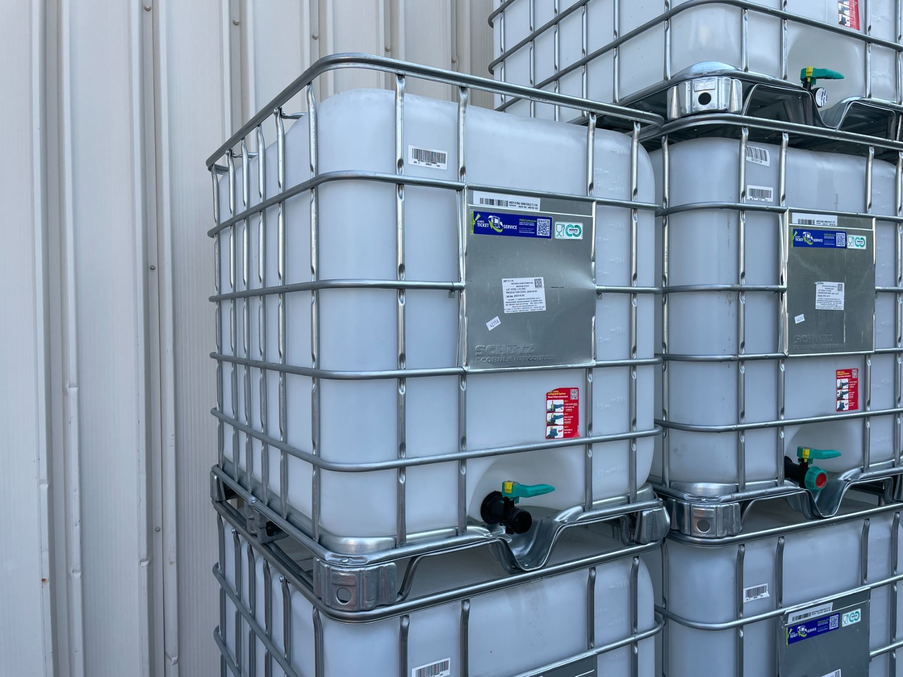 SCHUTZ FOOD GRADE 1000L PLASTIC COMMERCIAL METAL FRAMED LIQUID TRANSPORT PALLET ( WAS USED TO TRANSPORT SUNFLOWER OIL )