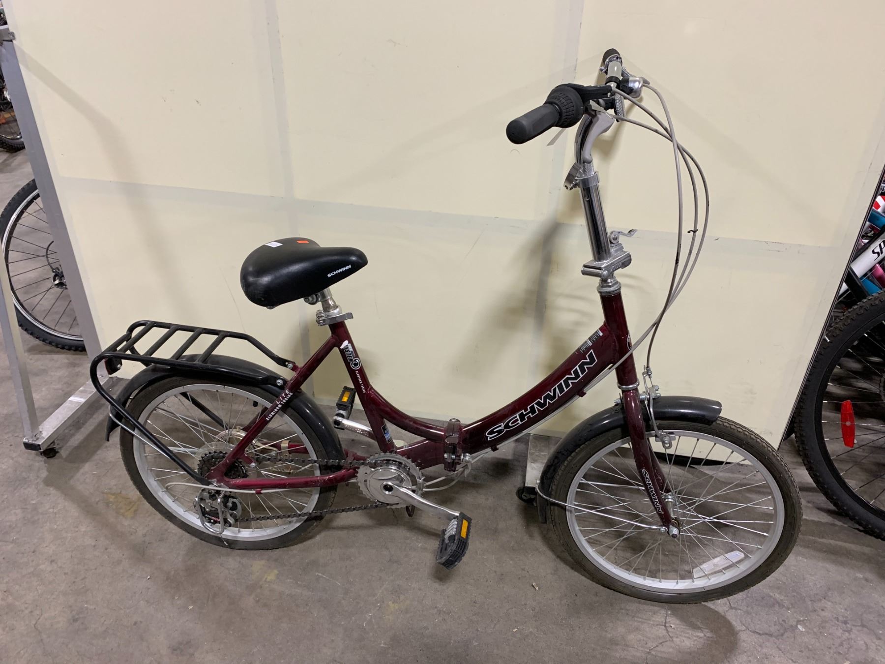 SCHWINN MAROON 12 SPEED MEDIUM SIZE FOLDABLE ROAD BIKE WITH REAR DRUM BREAK