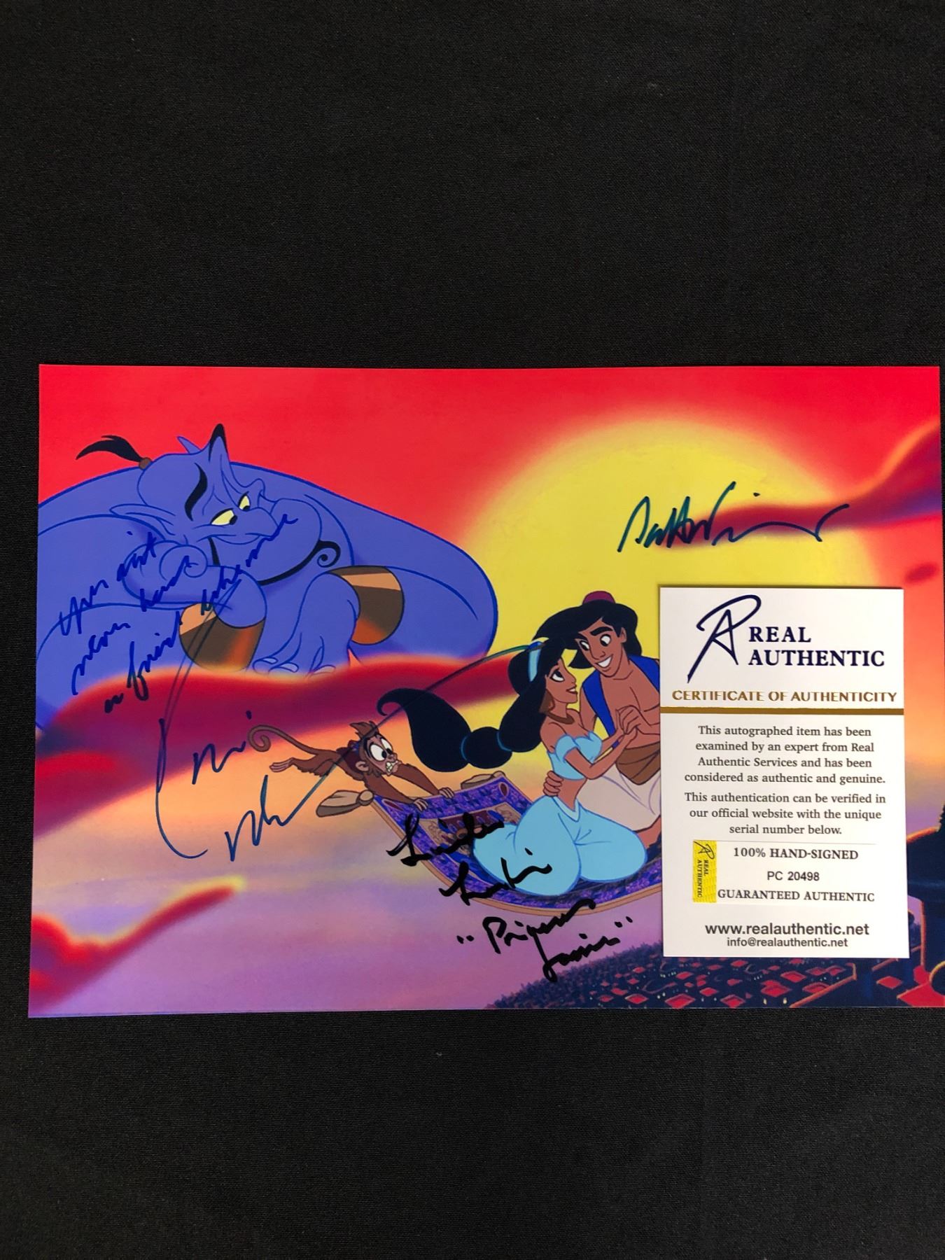 SCOTT WEINGER, LINDA LARKIN & ROBIN WILLIAMS SIGNED 8X10 ALADDIN PHOTO (RA COA)