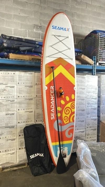 SEAMAX 10.8FT ORANGE SEADANCER INFLATABLE STAND UP PADDLE BOARD *NEW IN BOX* MAX LOAD 300LBS INCLUDES TELESCOPE PADDLE, HAND PUMP WITH AIR GAUGE, LEASH, BACKPACK STYLE CARRYING BAG