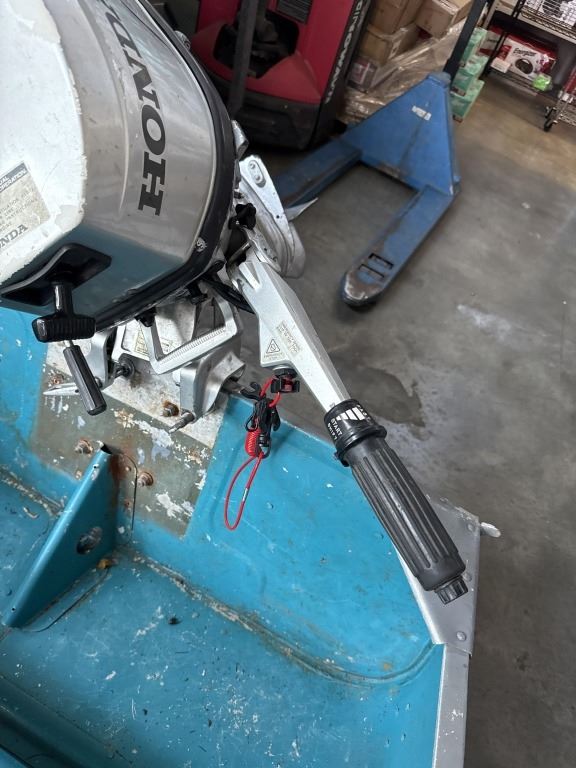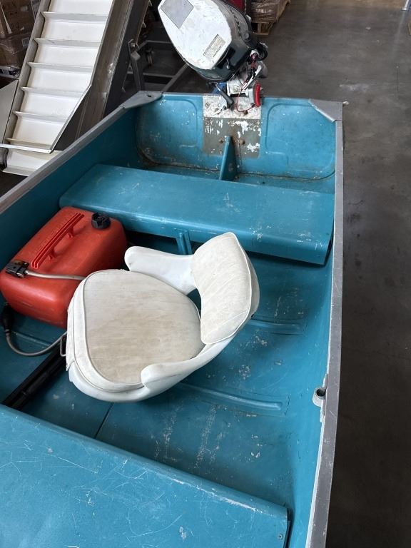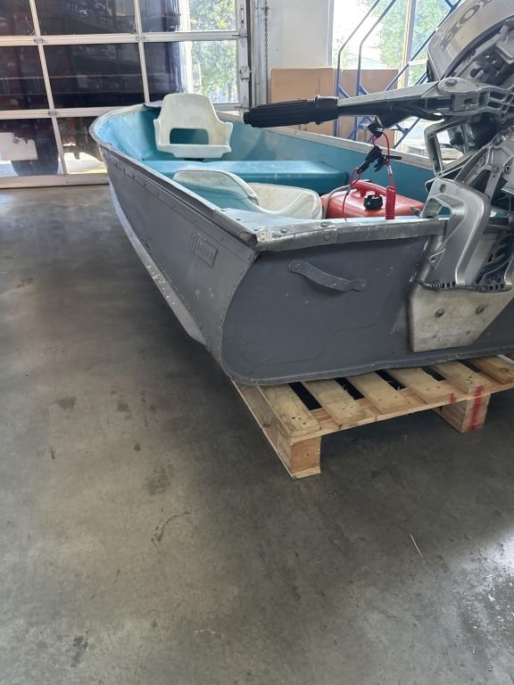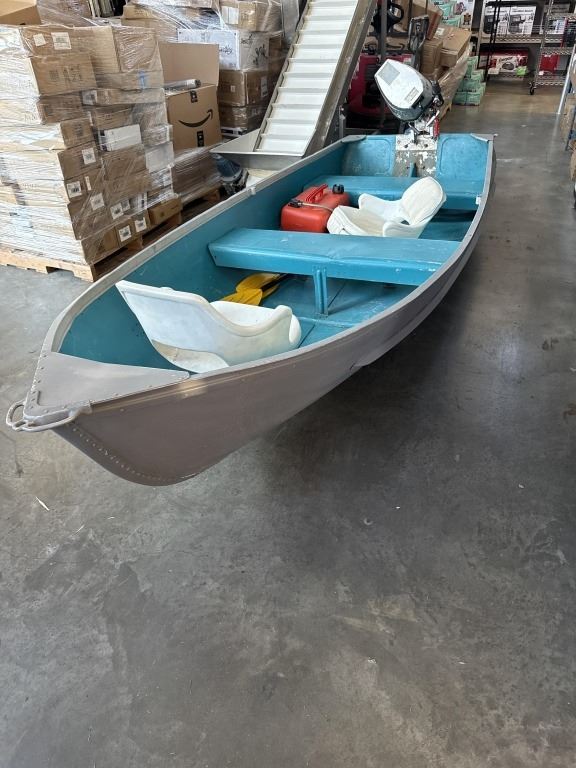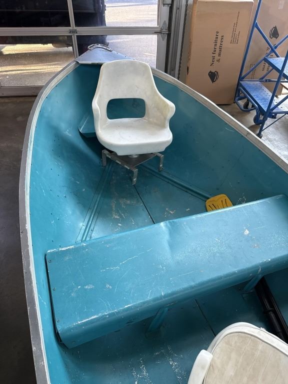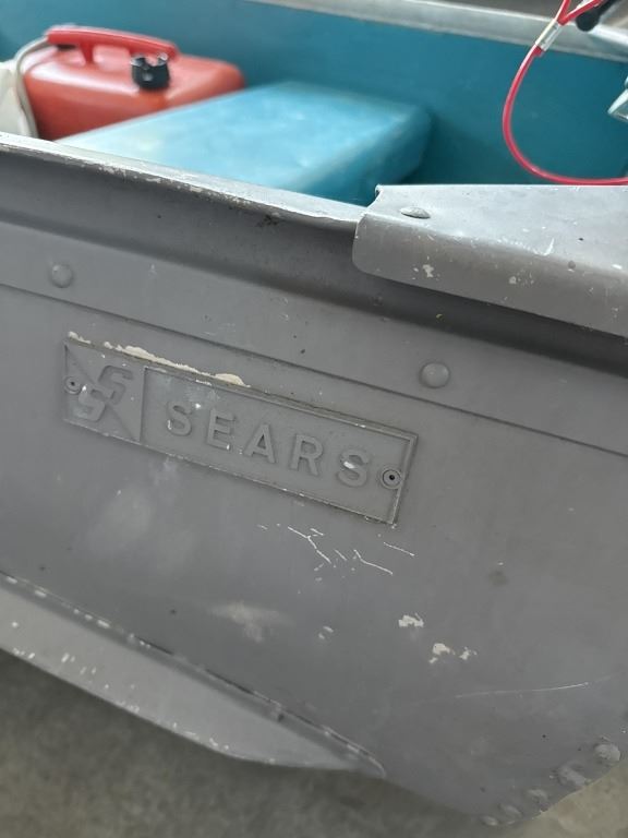 SEARS ALUMINUM 12FT FISHING BOAT WITH HONDA 8HP FOUR STROKIE GAS MOTOR, RUNNING, INCLUDED OARS, 2 SEATS
