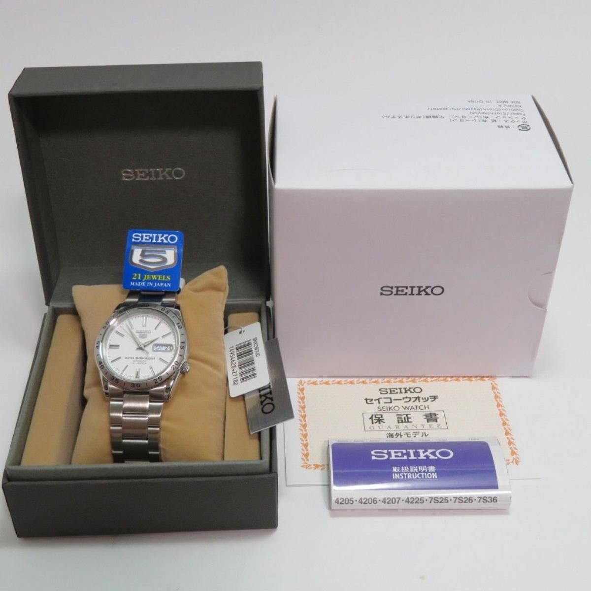 Brand SEIKO......Case shape round face;Windshield Material Hard Rex Crystal Glass;Display Type Analog Display;Clasp three-fold push type clasp;Case material Stainless steel;Case diameter · width 37 mm;Case thickness 12 mm;Band Material · Type Stainless Steel Bracelet Type;Band length about 13.5 to 19.5 cm;Band width 20 mm;;Band color silver;Dial Color White;Calendar function day date;Body weight 118 g;Automatic winding movement;
