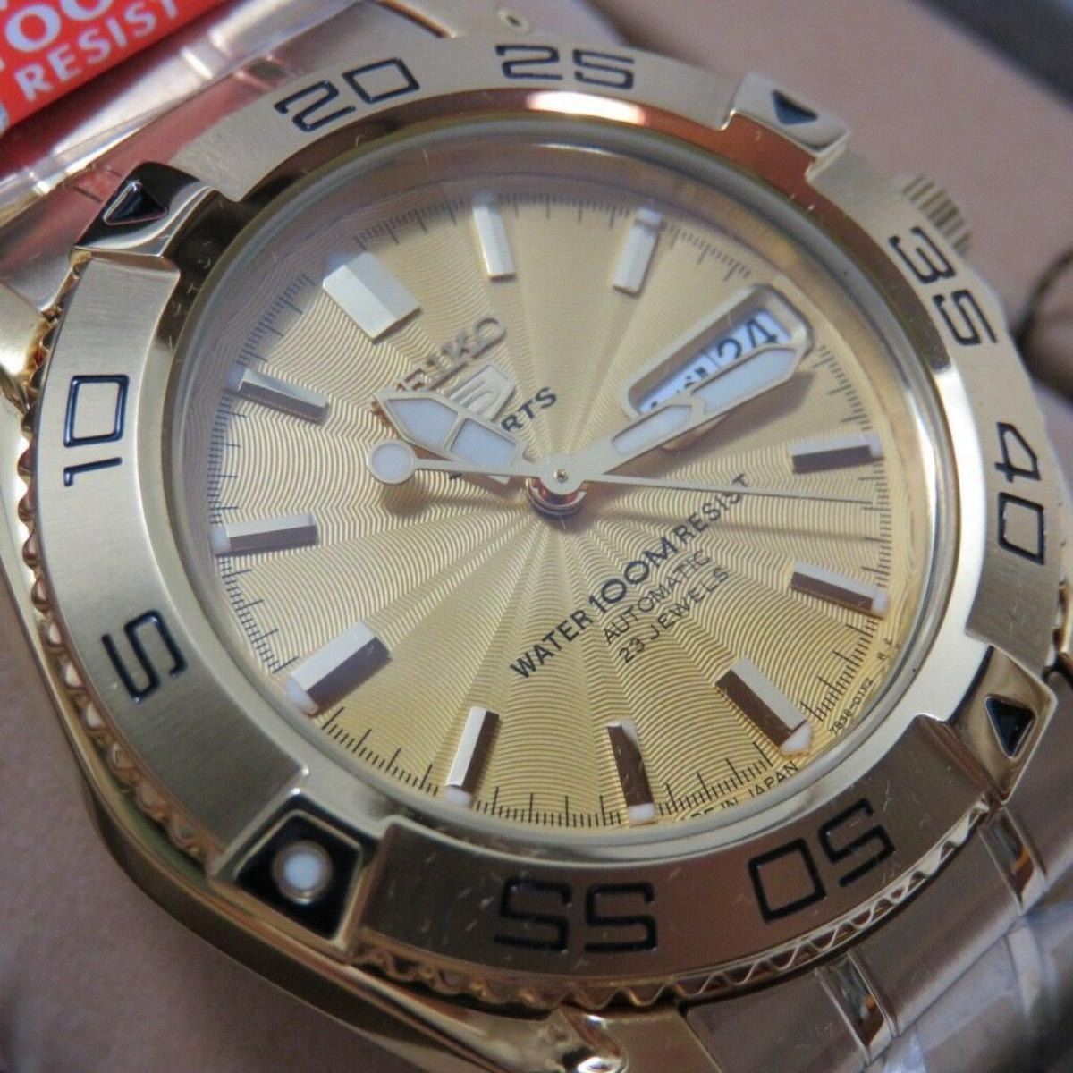 Brand SEIKO WATCH (Seiko Watch).........Case shape round face;Windshield Material HARLEX;Display Type Analog;Clasp W lock three folds;Case material Stainless steel (gold plating);Case diameter · width 38 mm;Case thickness 12;Band Material · Type Stainless steel;Band width 20 decimeters;Band color gold;Dial Color Gold;Bezel material Stainless steel;Bezel function reverse rotation bezel;Calendar function Date, day of week display;Other functions Night light index, rotating bezel;Body weight 136 g;Automatic winding movement;Waterproof pressure 100 m;