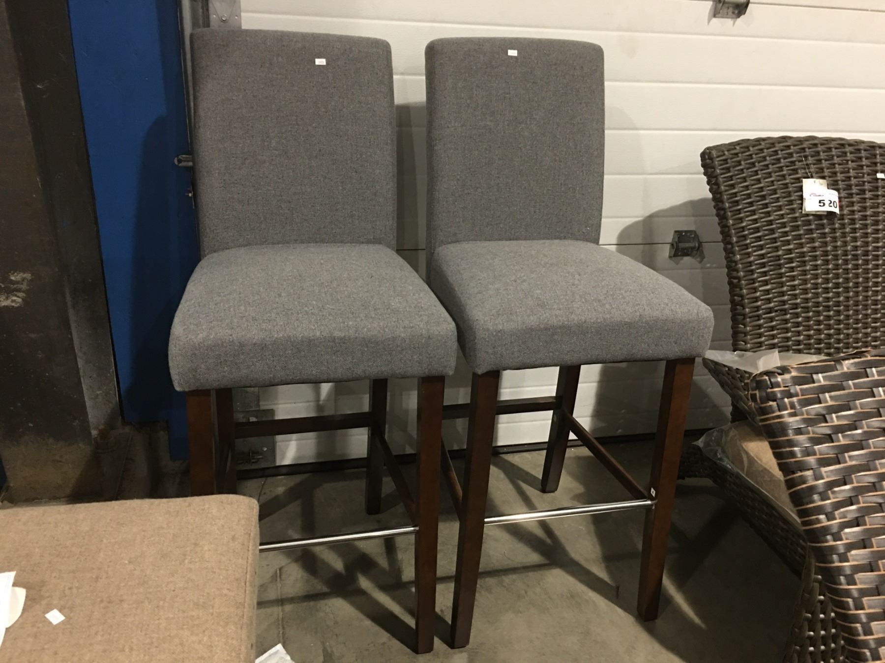 SET OF 2 GREY UPHOLSTERED BAR CHAIRS (SEAT 29"H TOTAL 45" H)
