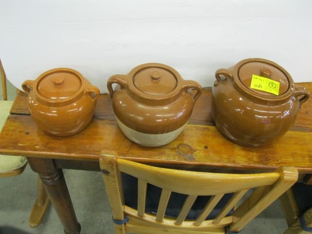 SET OF 3 CROCKERY BEAN POTS WITH LIDS