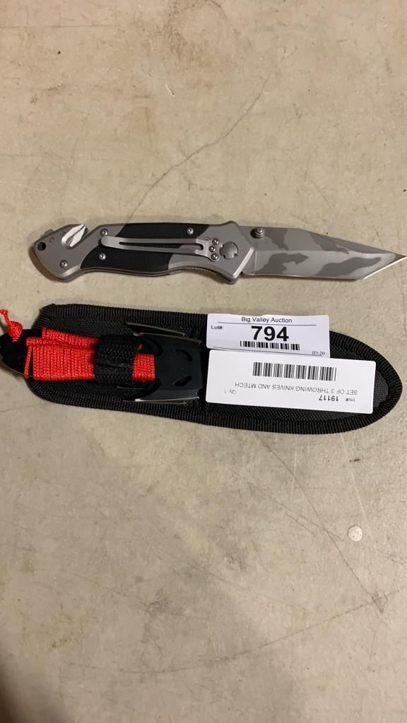 SET OF 3 THROWING KNIVES AND MTECH RESCUE FOLDING KNIFE