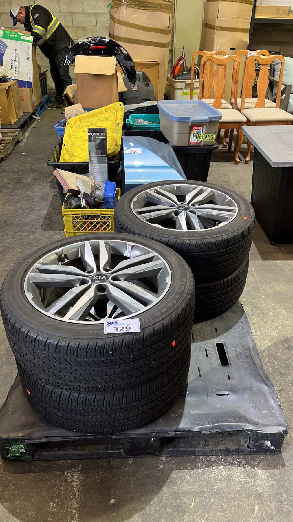 SET OF 4 ALUMINUM RIMMED KIA TIRES: FIRESTONE ALL SEASON 235/45R18 94H M+S