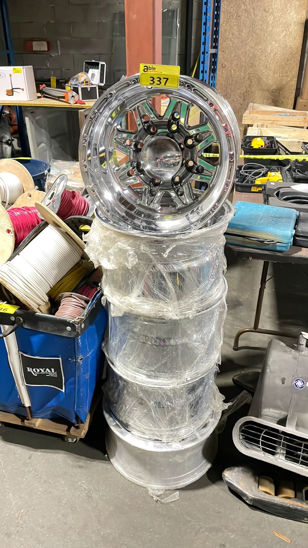 SET OF 4 CHROME 8 BOLT 17" VEHICLE RIMS & CHROME BACK UP RIM