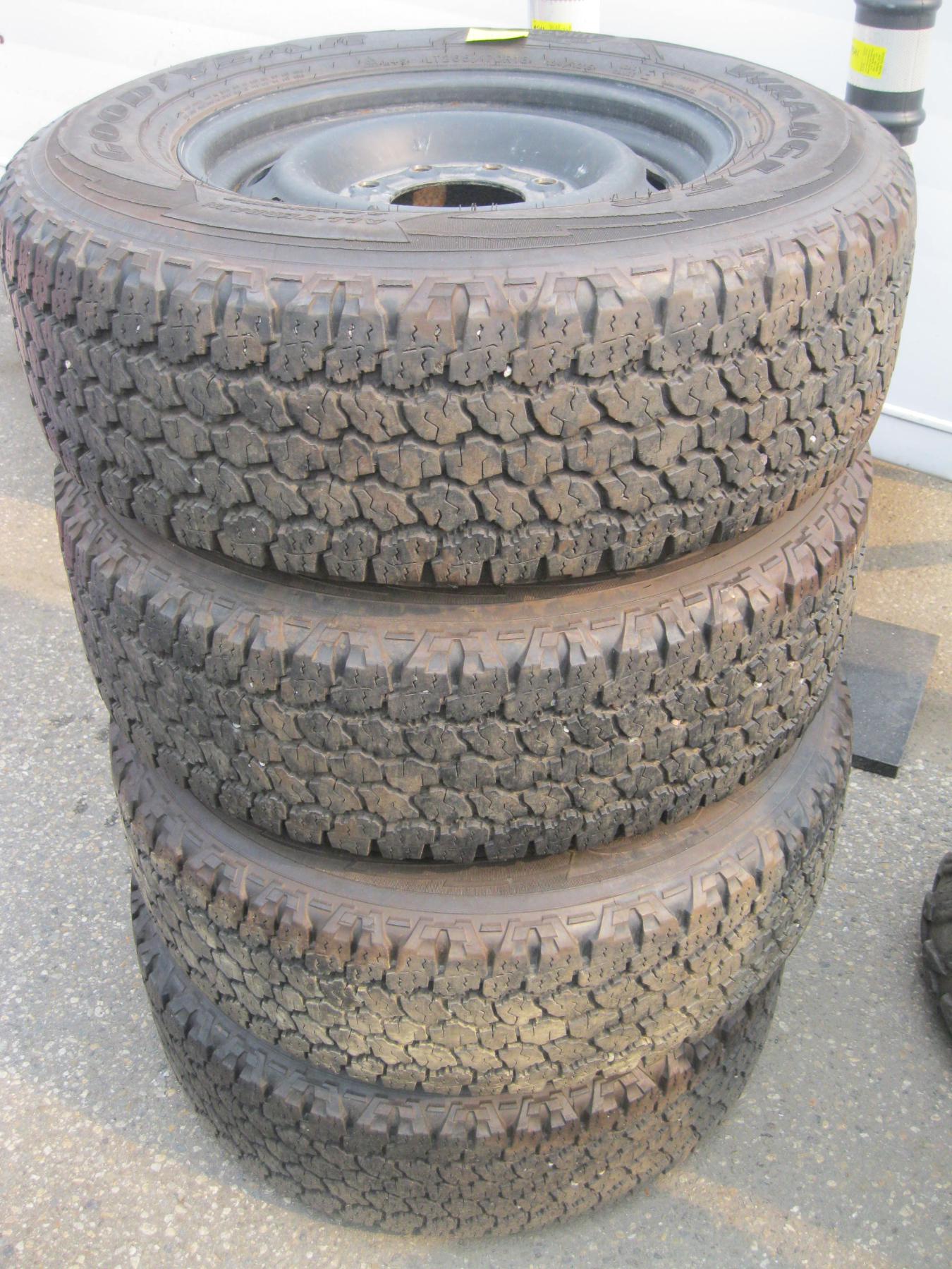 SET OF 4 GOODYEAR WRANGLER TIRES ON 8 BOLT RIMS - LT265/70R18