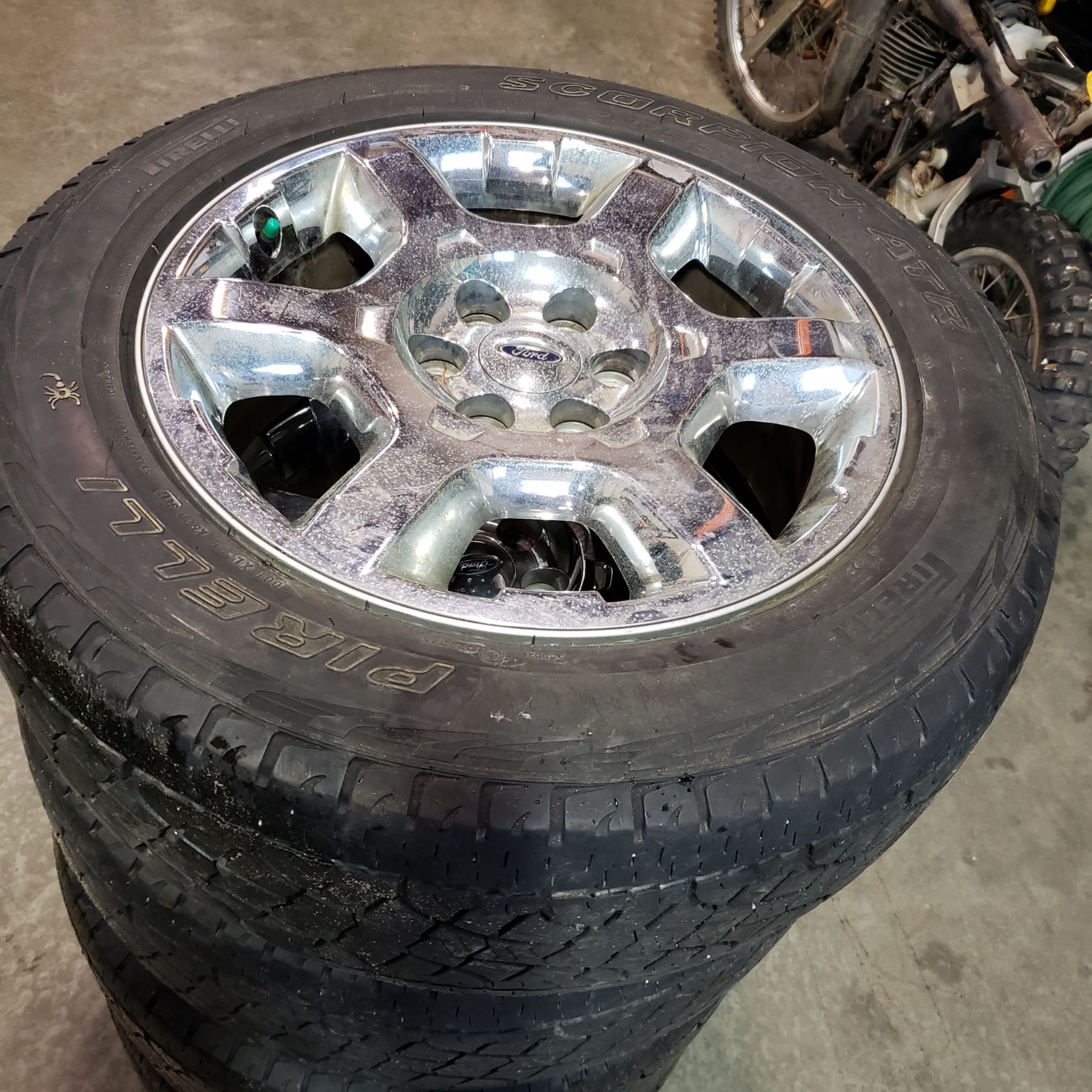 SET OF 4 PIRELLI SCORPION ATR 275/55 R20 INCH TIRES ON 6 BOLT FORD RIMS