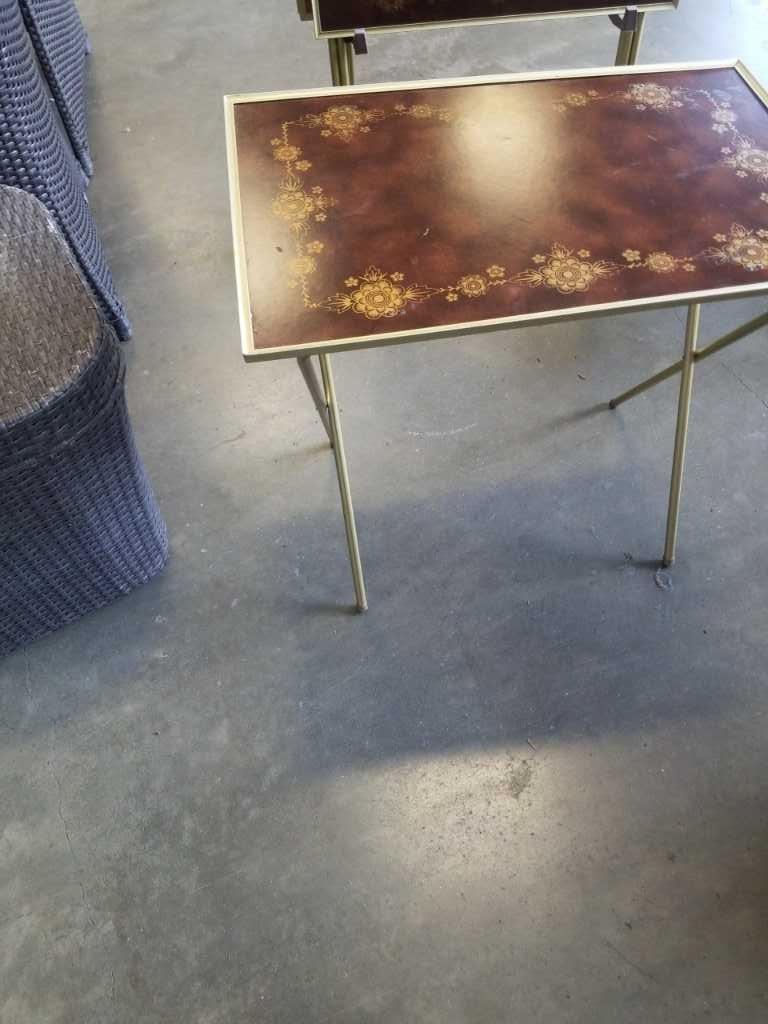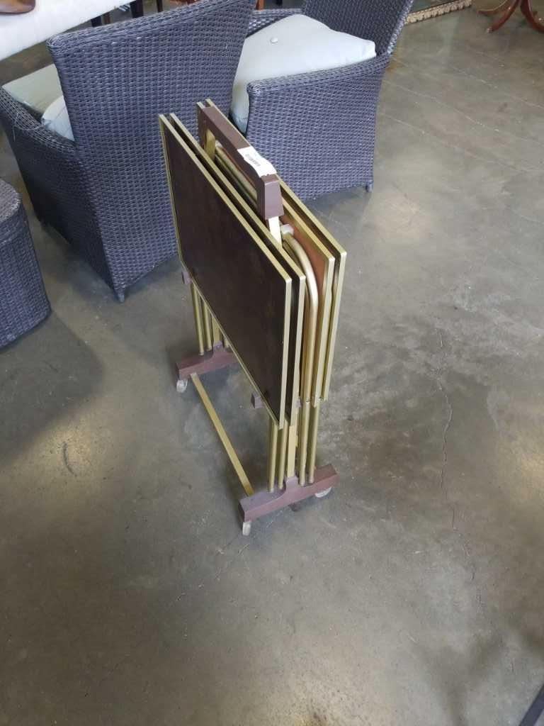 SET OF FOUR FOLDING TV TRAYS AND STAND