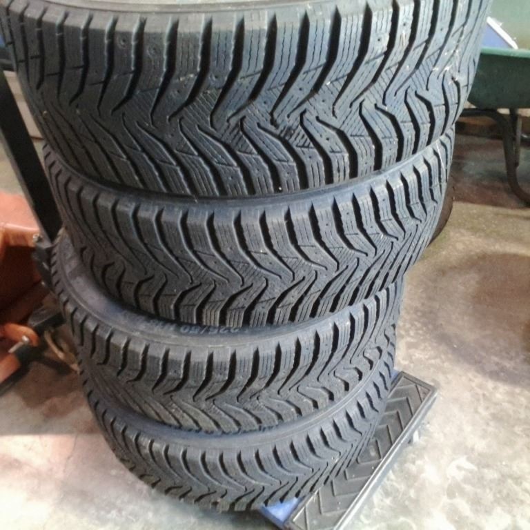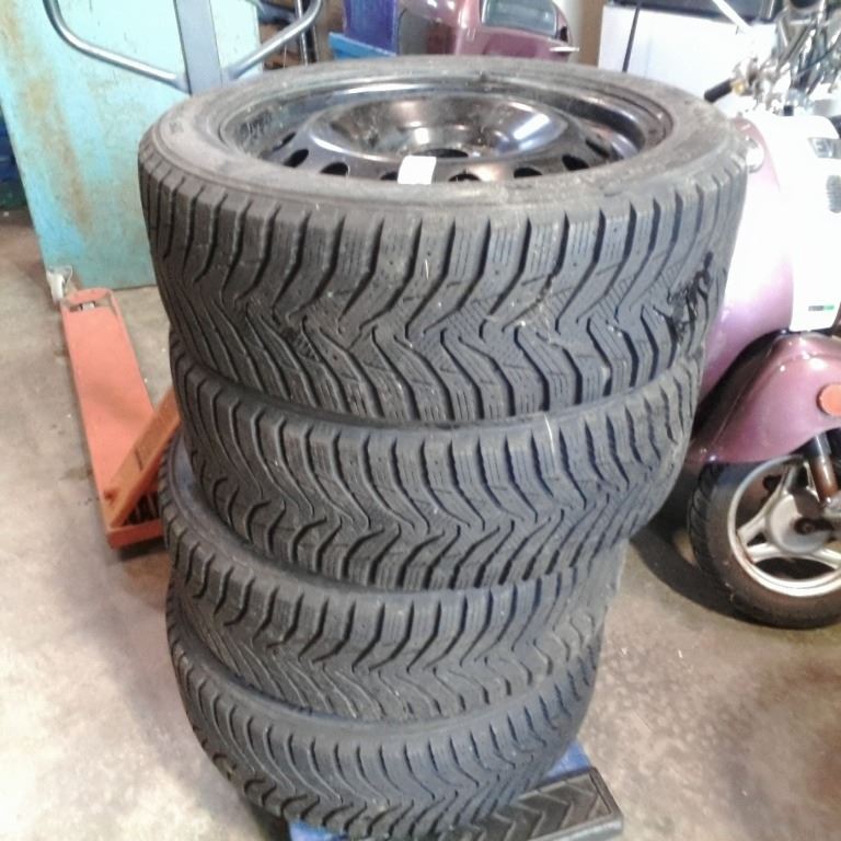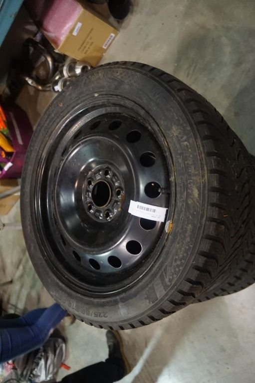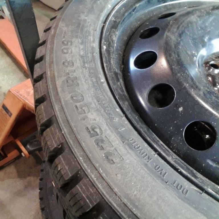 SET OF FOUR KUMHO 225/50R18 INCH TIRES ON 5 BOLT RIMS - STUDDABLE SNOW TIRES