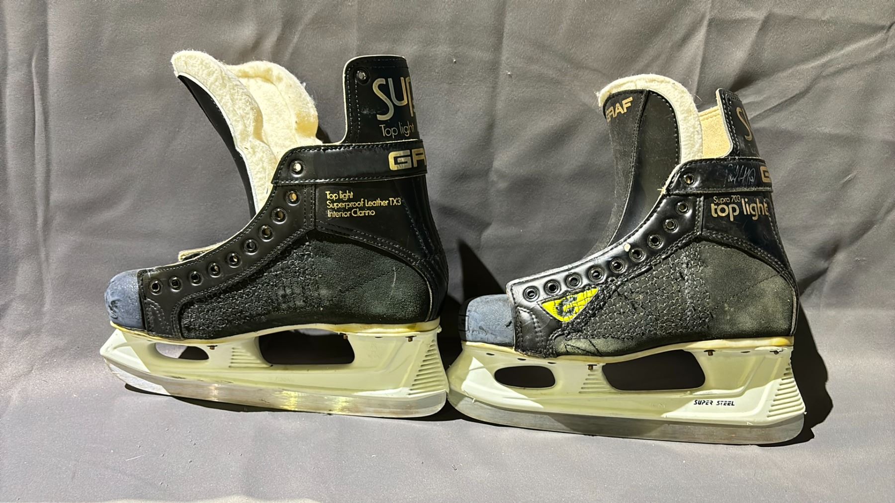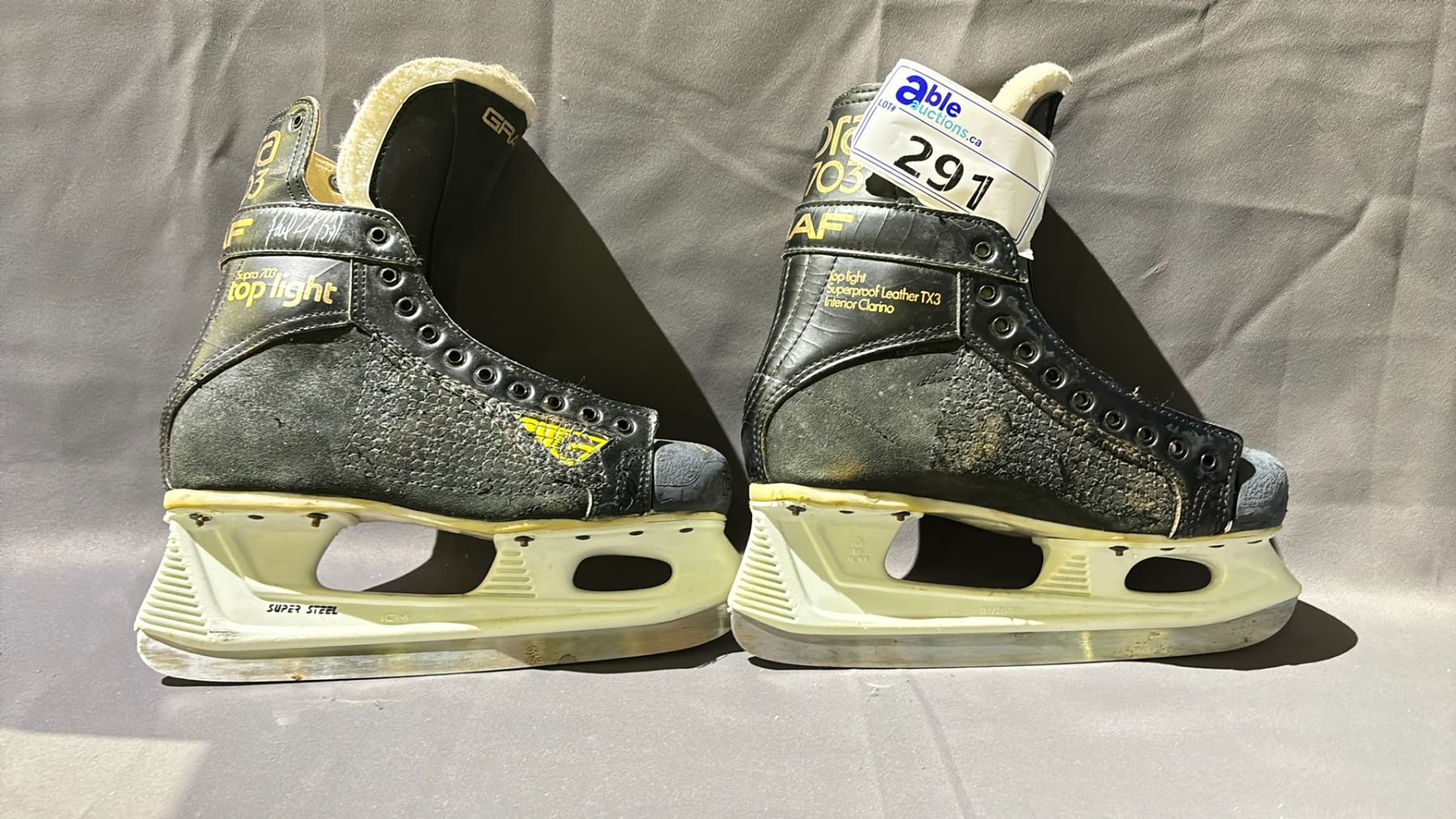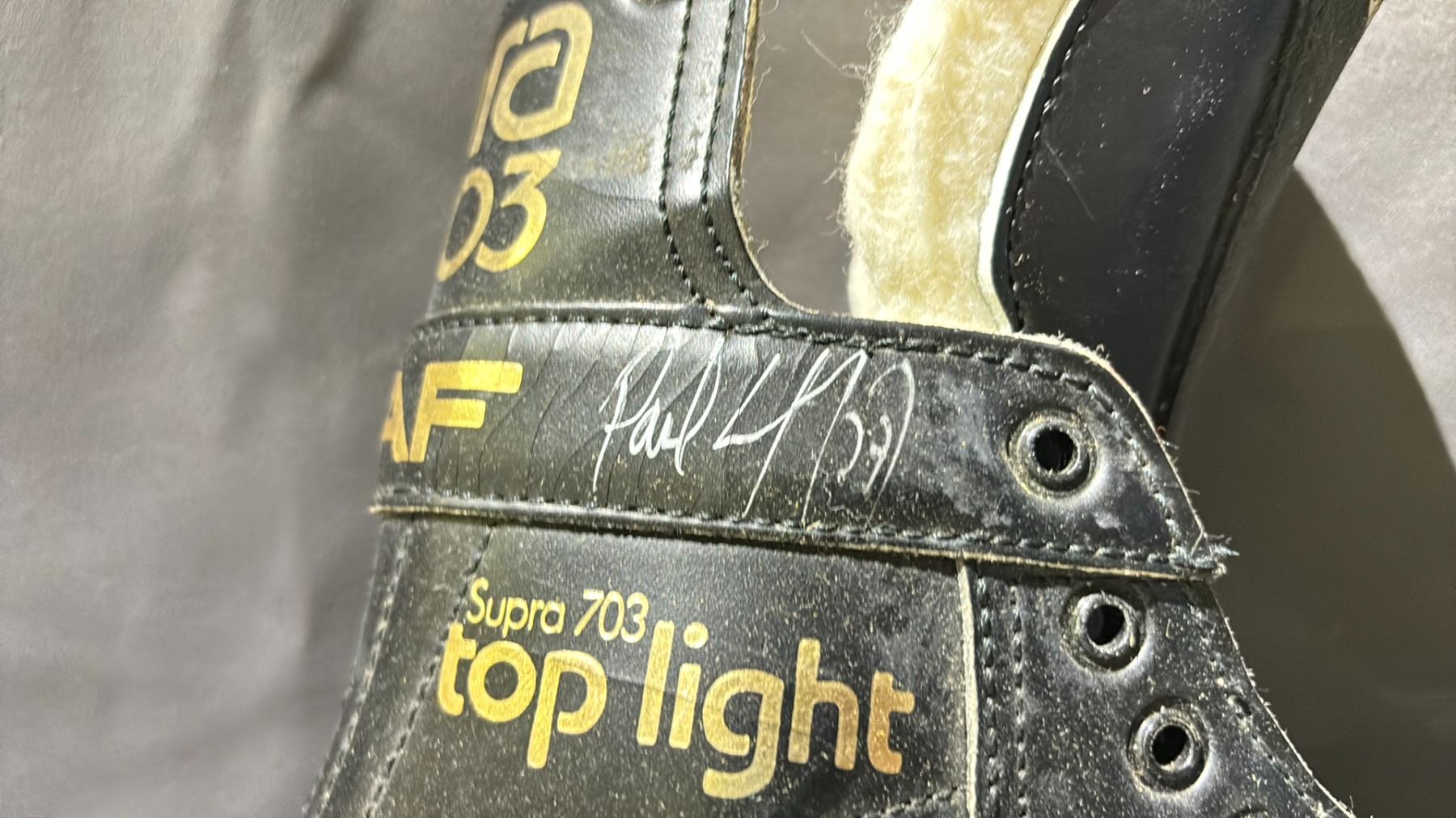 SET OF GAME USED PAUL COFFEE ICE SKATES, AUTOGRAPHED