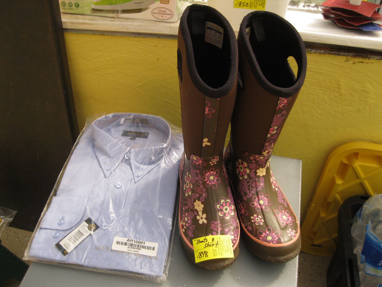 SET OF LADIES SZ 7 BOOTS & A MEN'S SZ 17 32/33 SHIRT