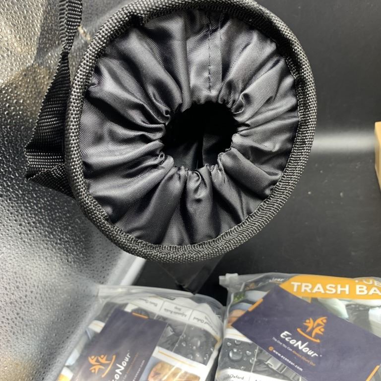 SEVEN NEW UMBRELLA STYLE WINDSHIELD SUNSCREENS AND FOUR TUBE AUTOMOTIVE TRASH RECEPTACLES