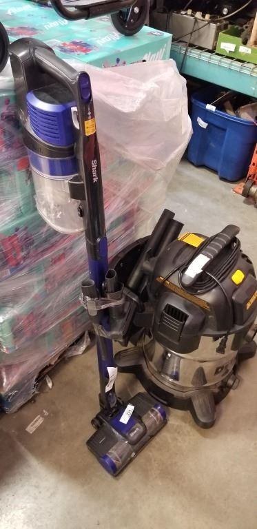SHARK ROCKET PRO CORDLESS VACUUM AND STAINLESS DEWALT SHOP VAC