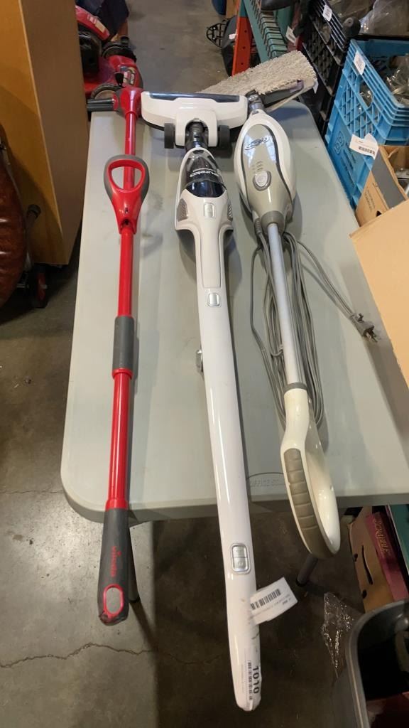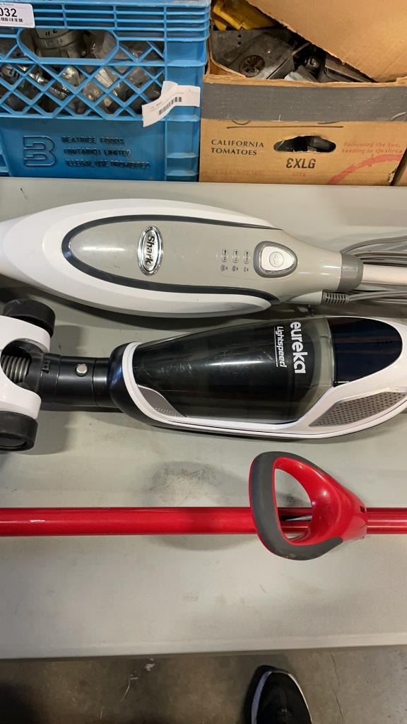 SHARK STEAM MOP, EUREKA LIGHTSPEED CORDLESS VACUUM AND MOP - NO CHARGER