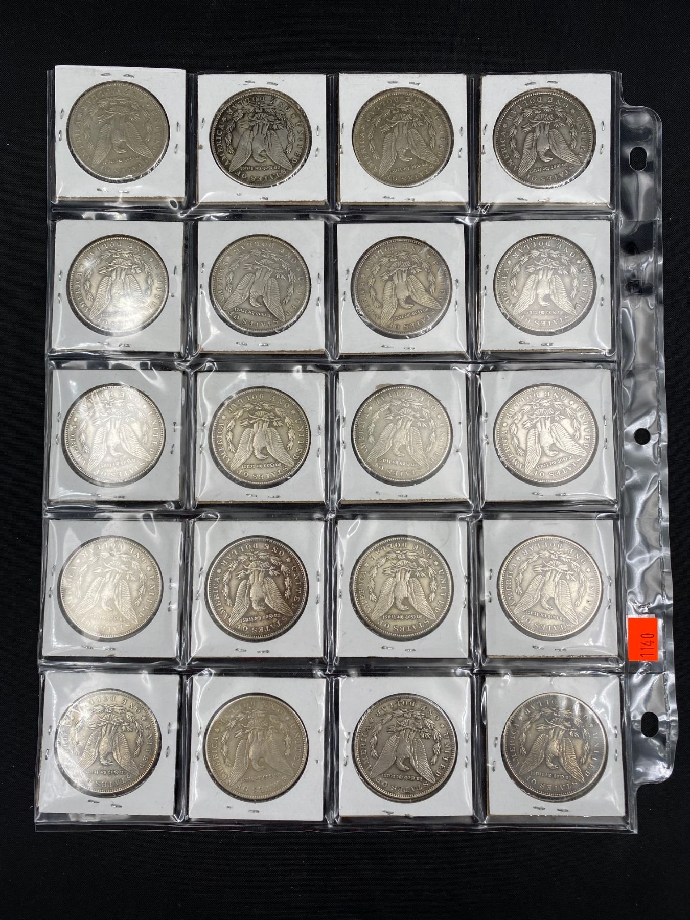 SHEET OF 20 MORGAN SILVER DOLLARS