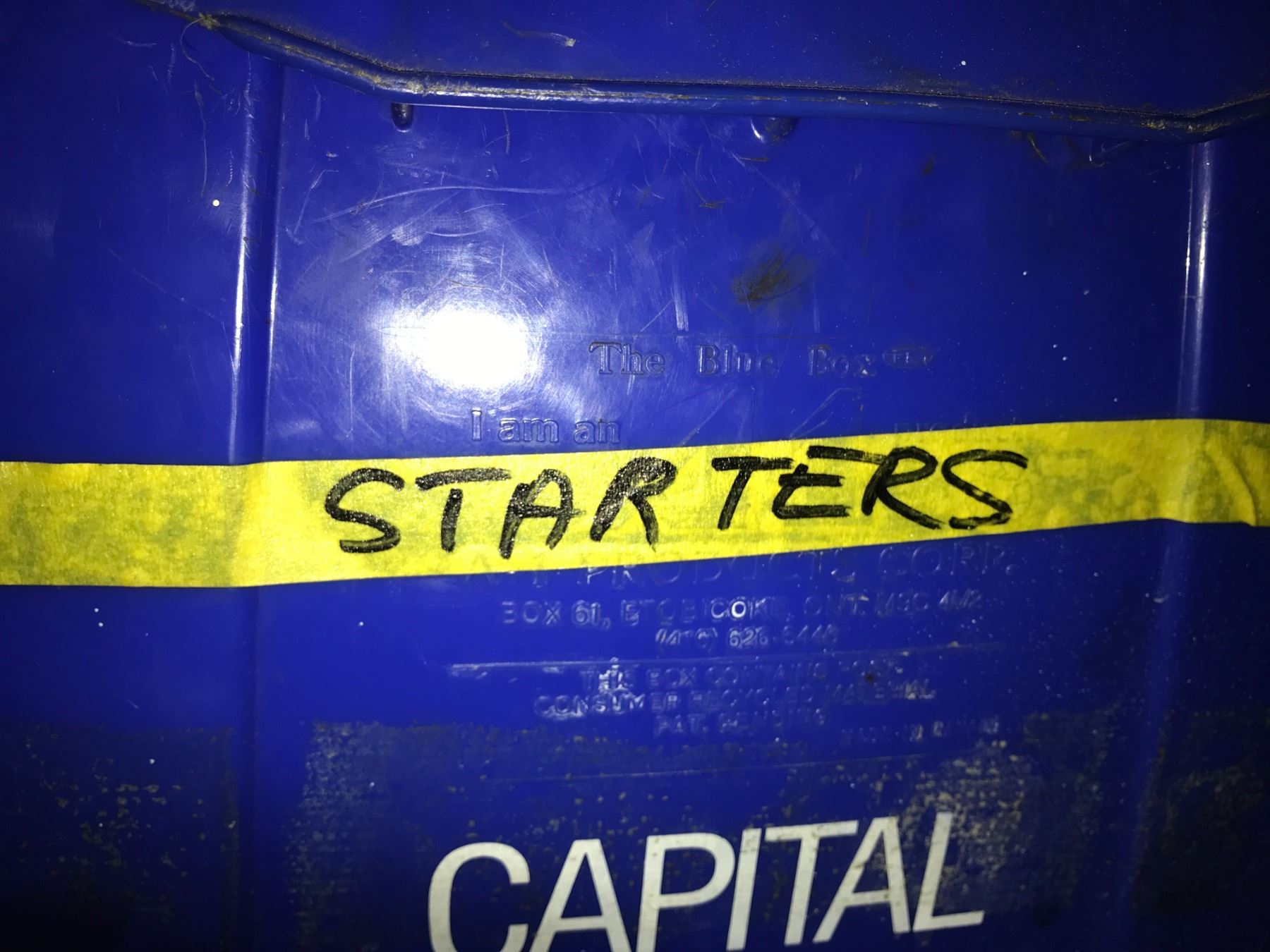 SHELF LOT 2 BINS SUBARU ELECTRICAL COMPONENTS, 1 BIN VANAGON STARTER MOTORS *NANAIMO*