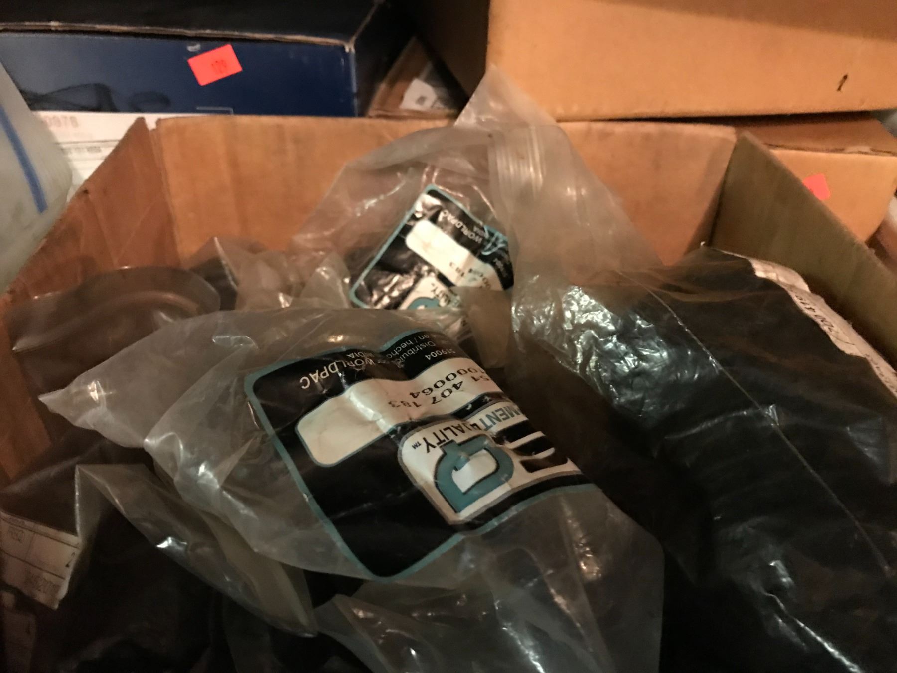 SHELF LOT CHASSIS COMPONENTS, BALL JOINTS, TIE RODS, BOOTS, WIRING RELAYS, INTERIOR LIGHTS, HORNS,