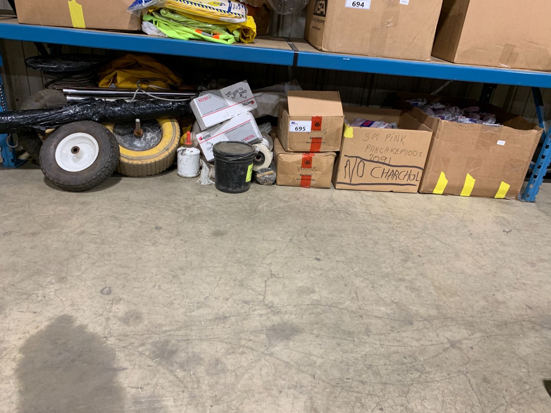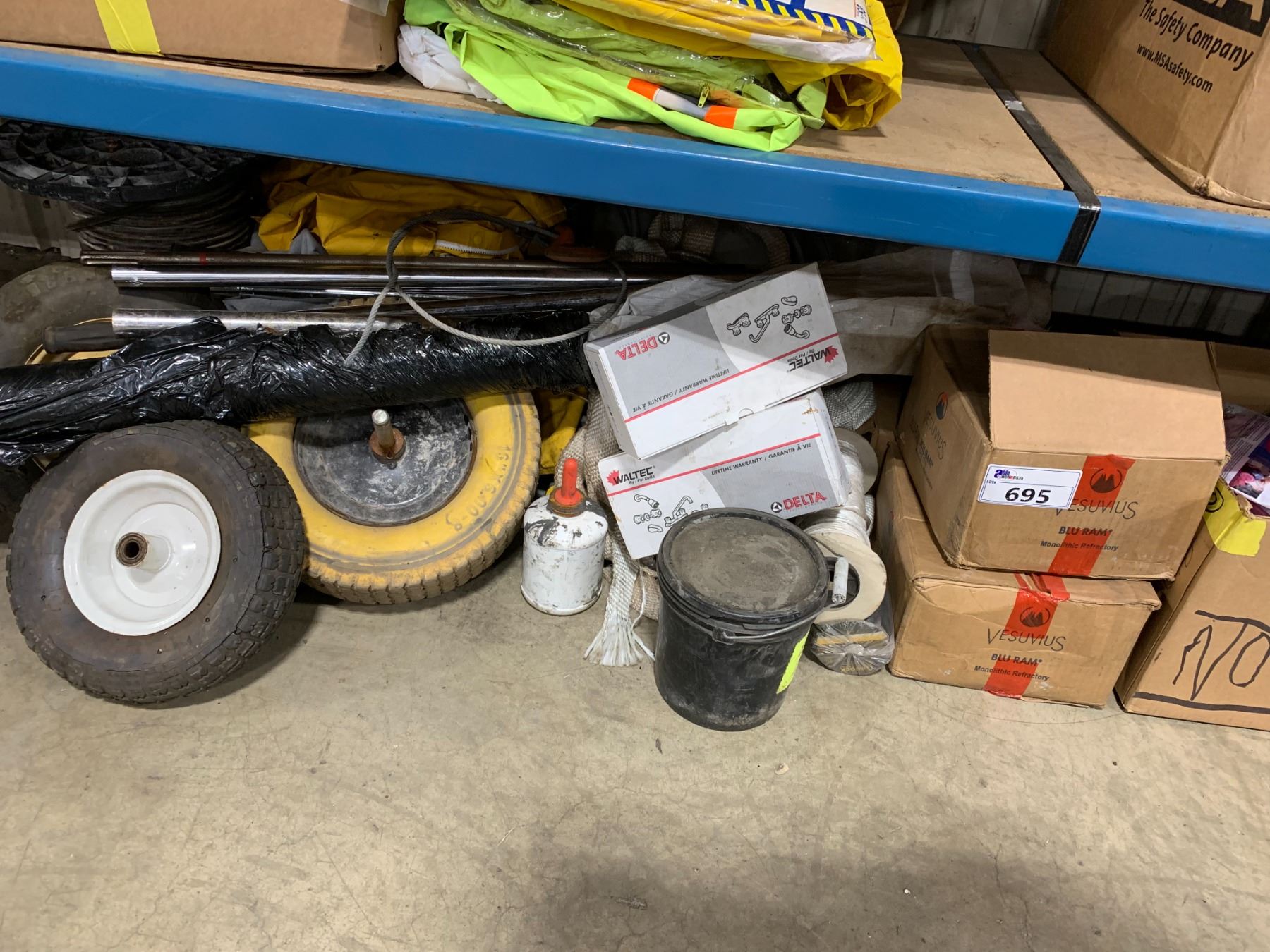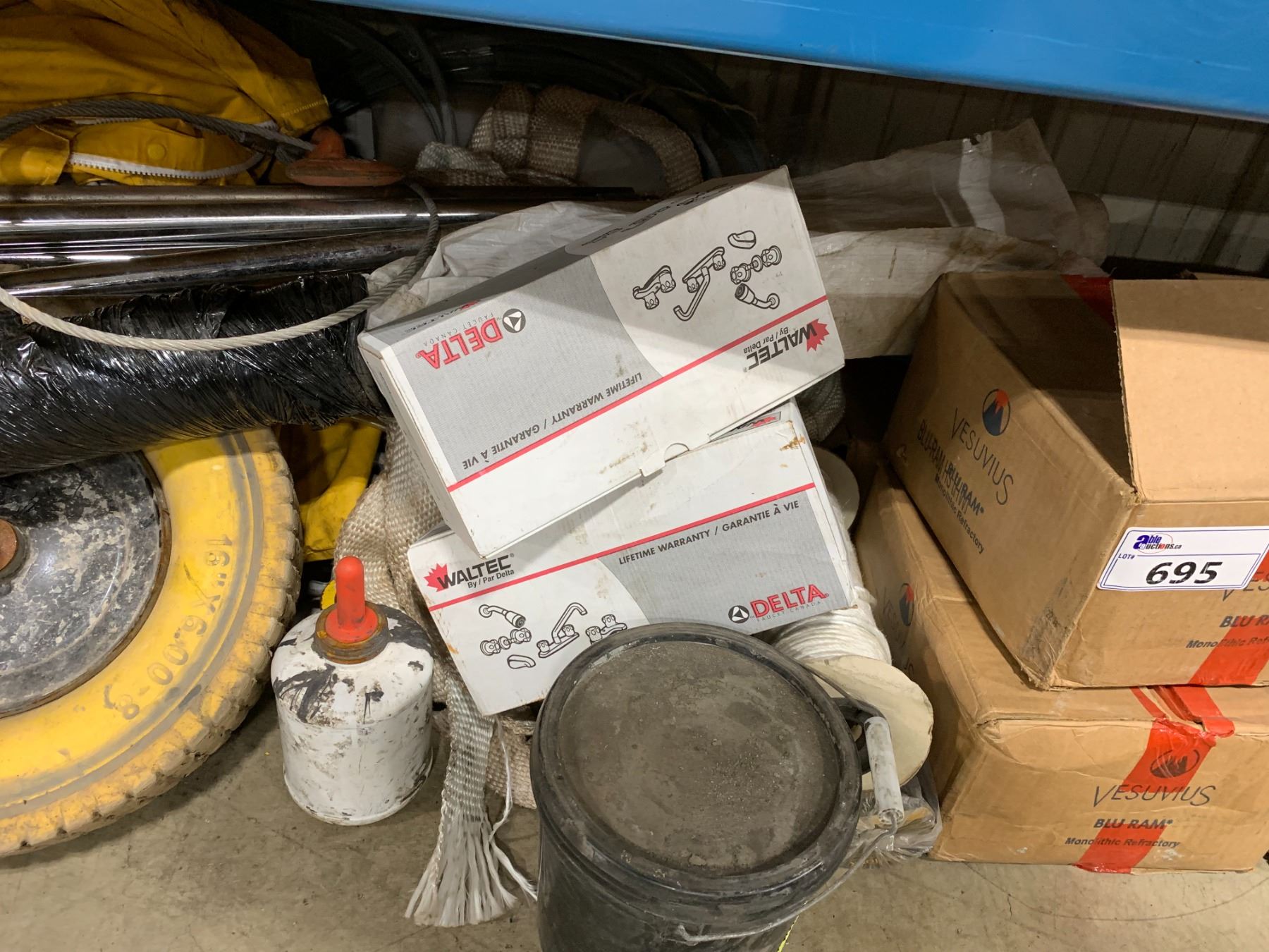 SHELF LOT OF 2 DELTA FAUCETS, 3M PARTICULATE FILTERS P100 WITH ASSORTED CABLES & WHEELS
