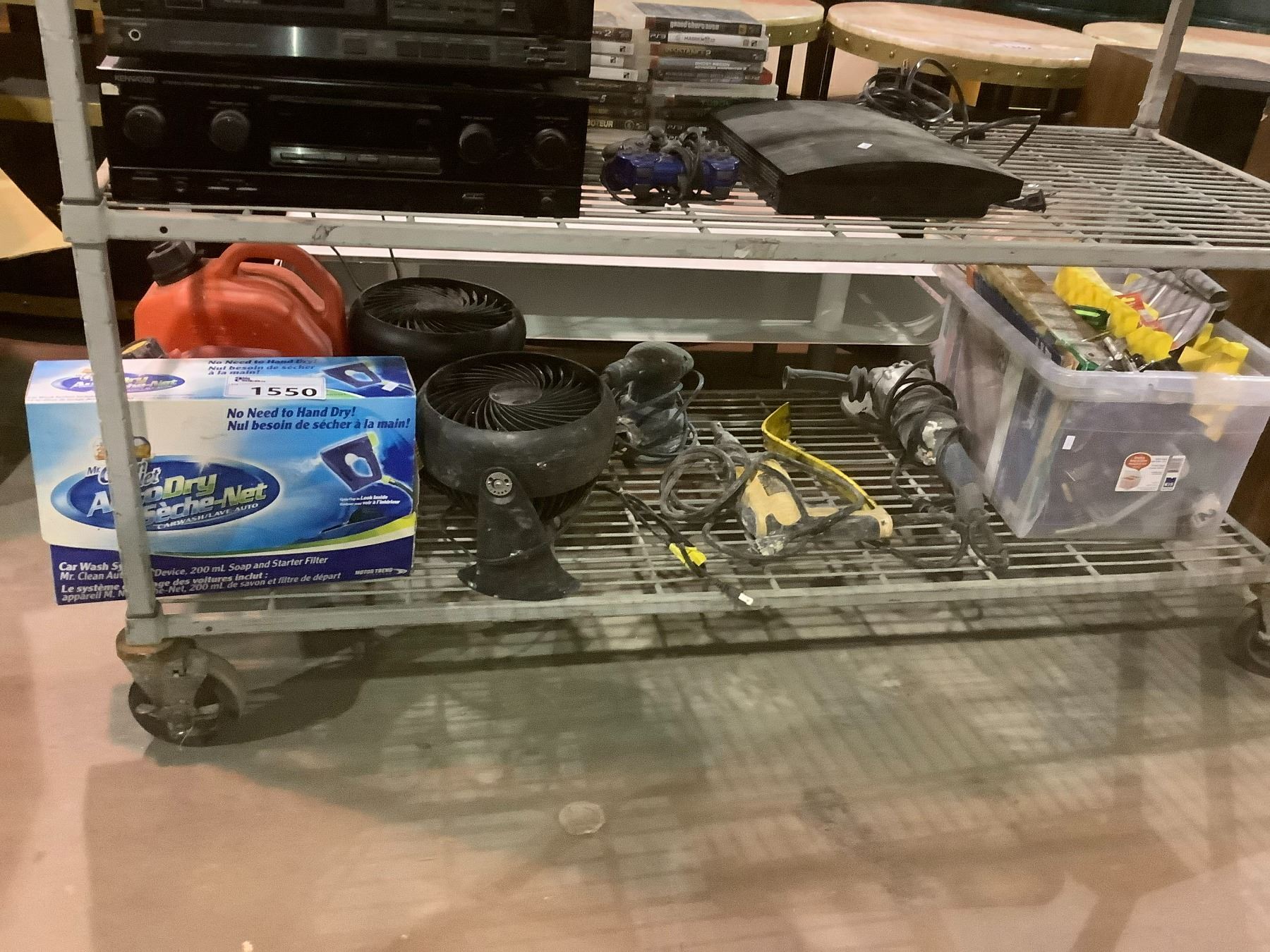 SHELF LOT OF ASSORTED GAS CONTAINERS, FANS, AUTO DRY, AND MORE