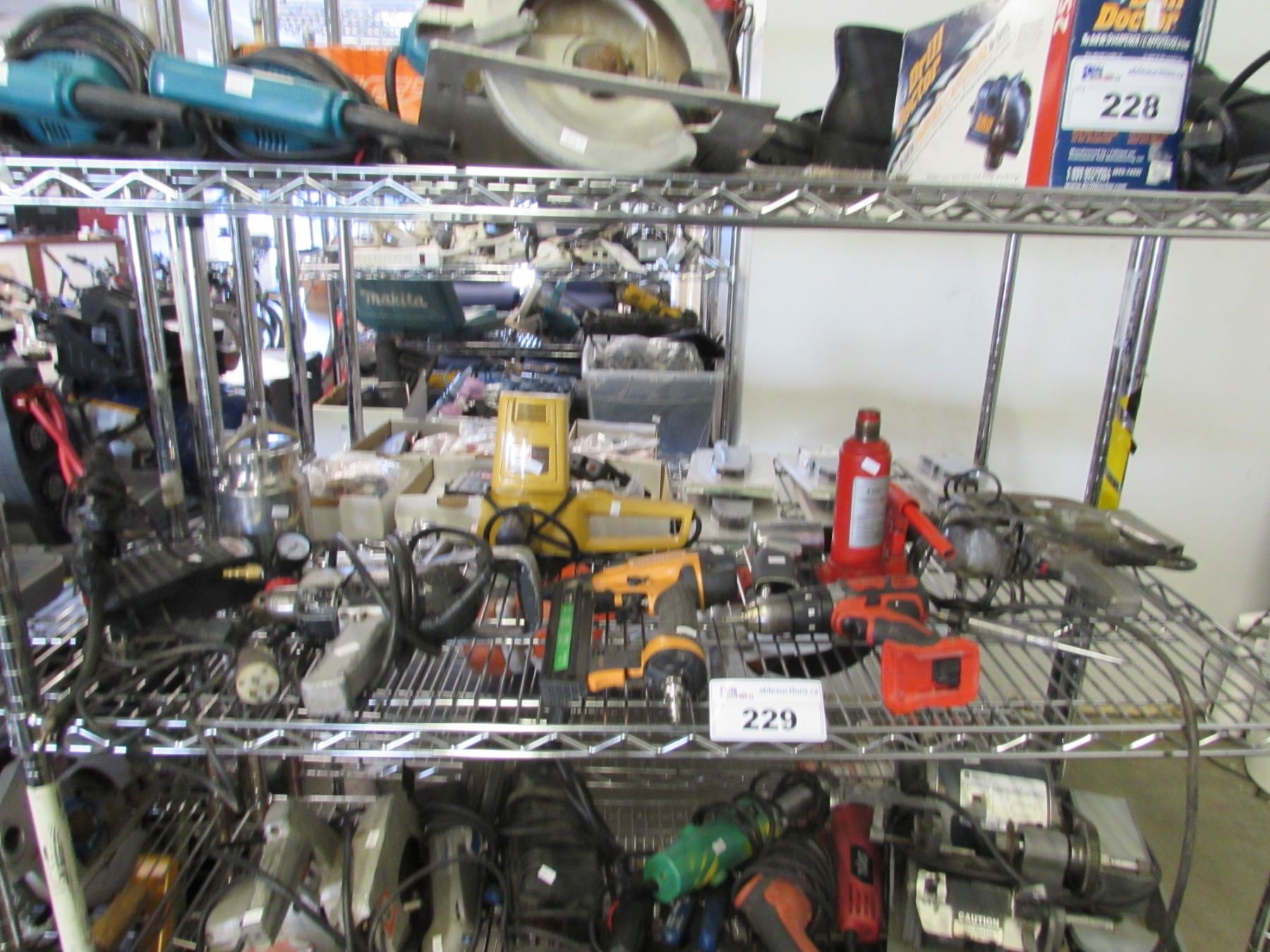 SHELF LOT OF ASSORTED HAND & POWER TOOLS