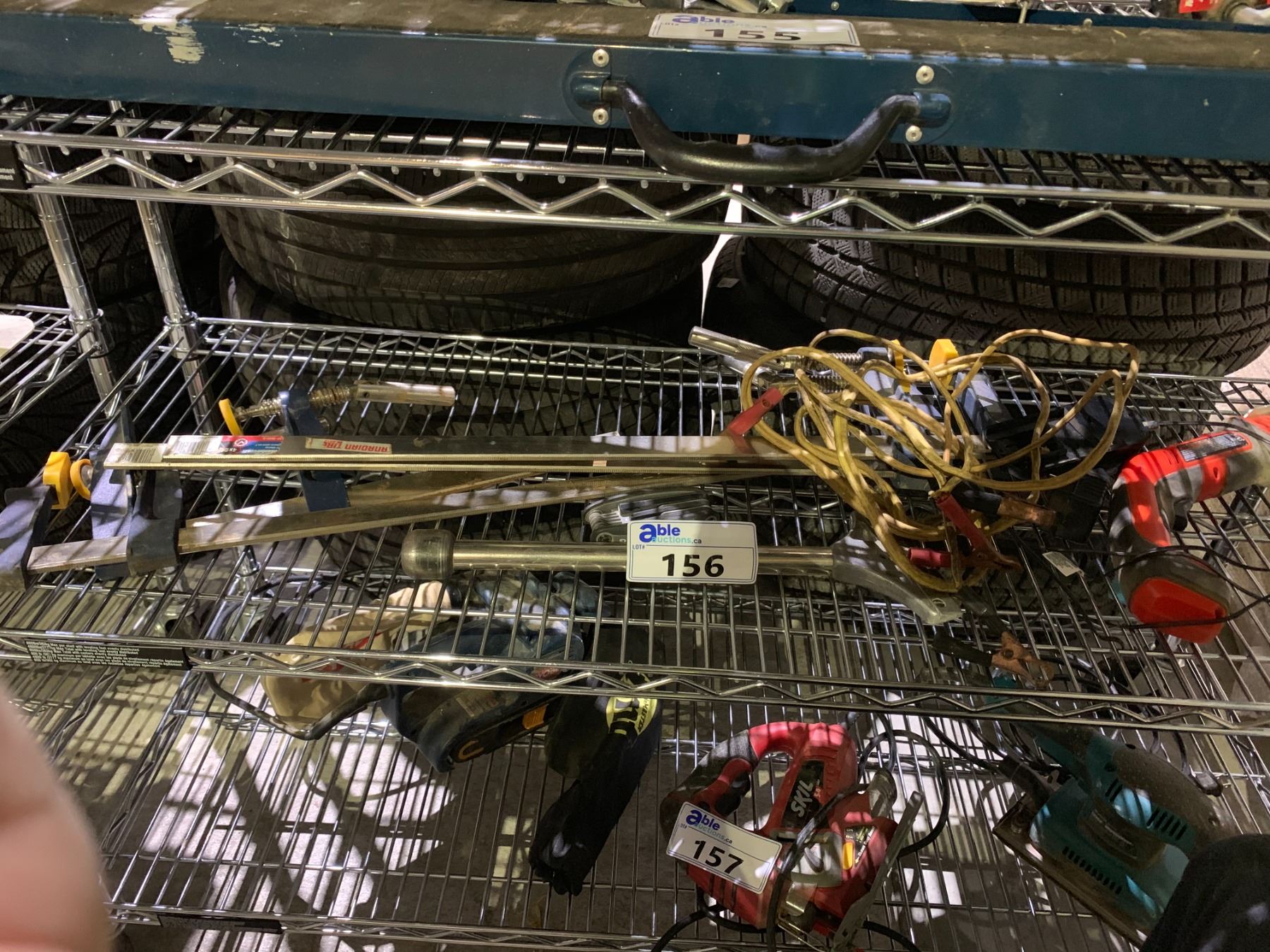 SHELF LOT OF ASSORTED RECIP SAW TYPE 2, JUMPER CABLES AND MORE