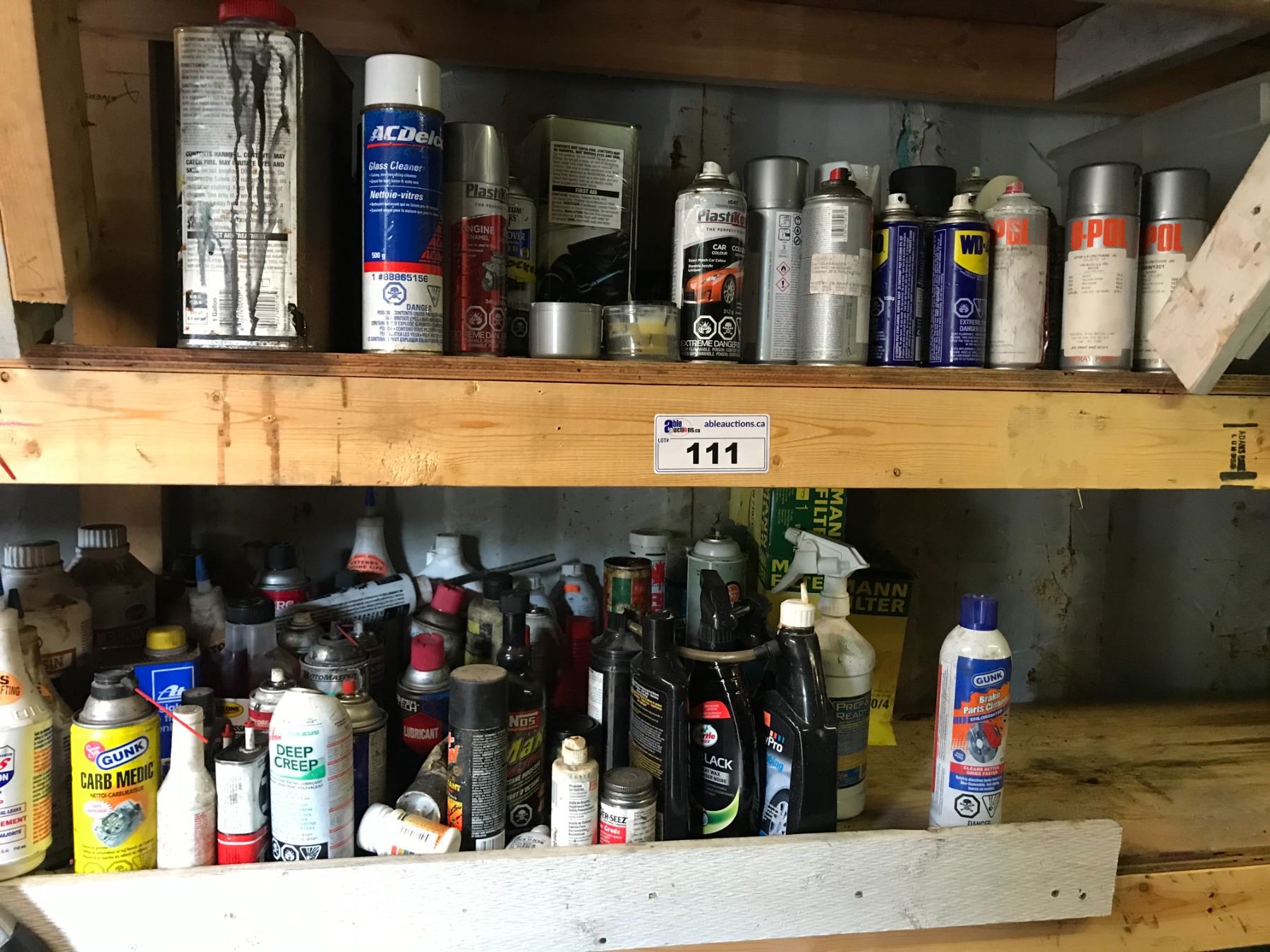 SHELF LOT OF ASSORTED SPRAY CLEANERS, LUBRICANTS & TOUCH UP PAINT *NANAIMO*