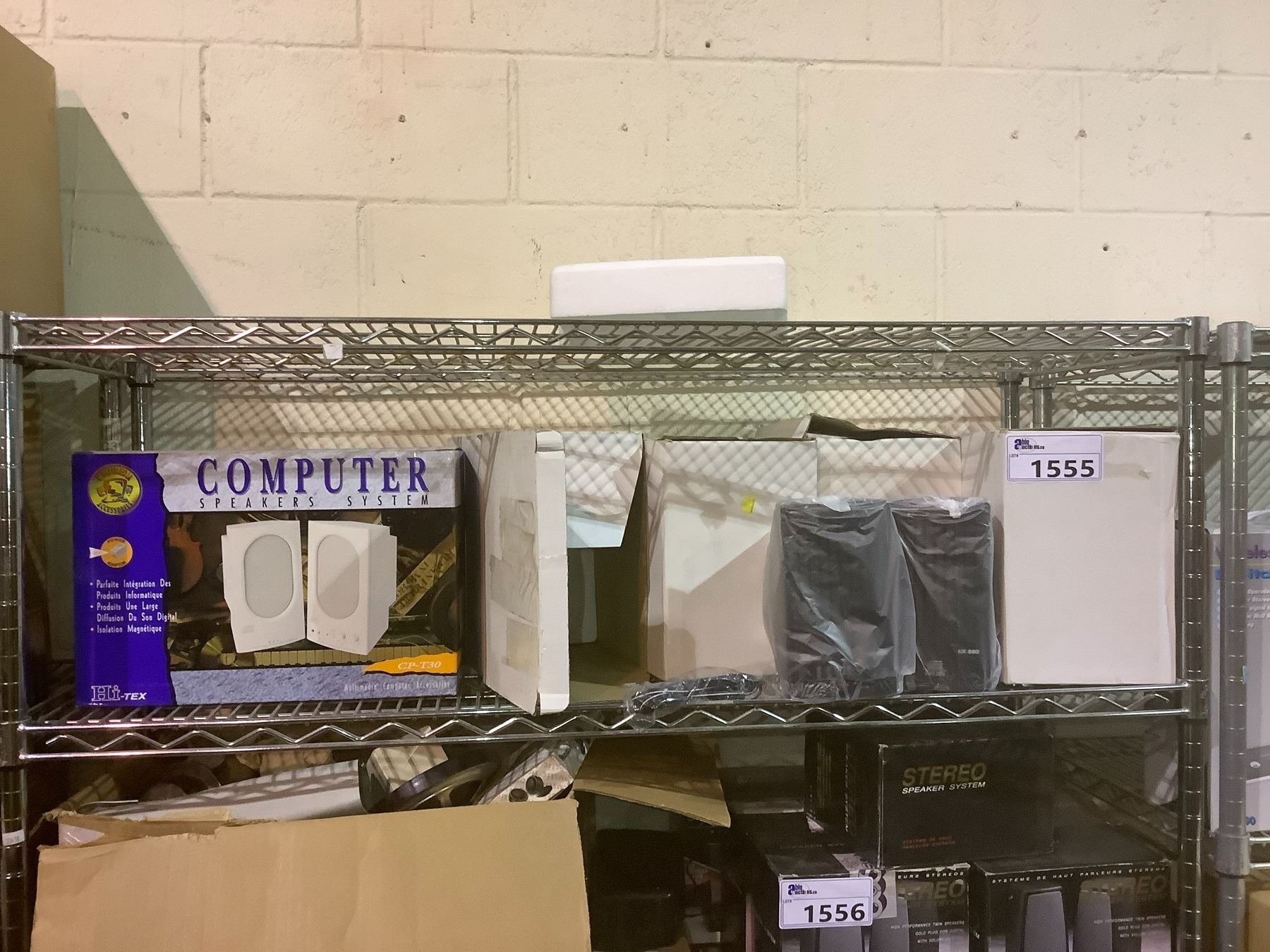 SHELF LOT OF COMPUTER SPEAKERS