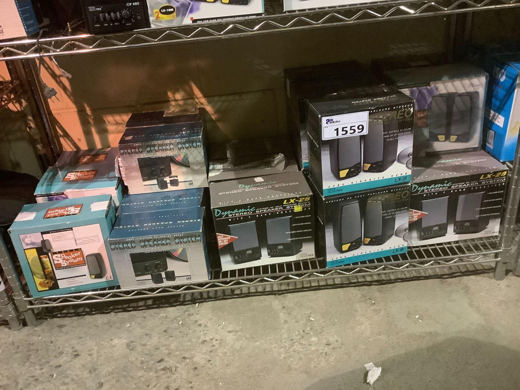 SHELF LOT OF COMPUTER SPEAKERS