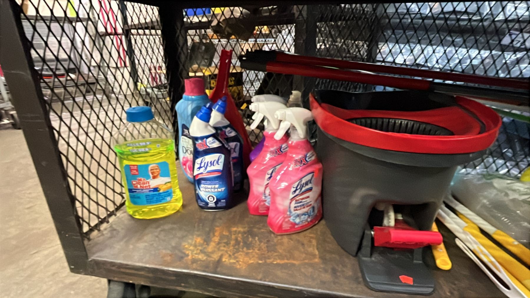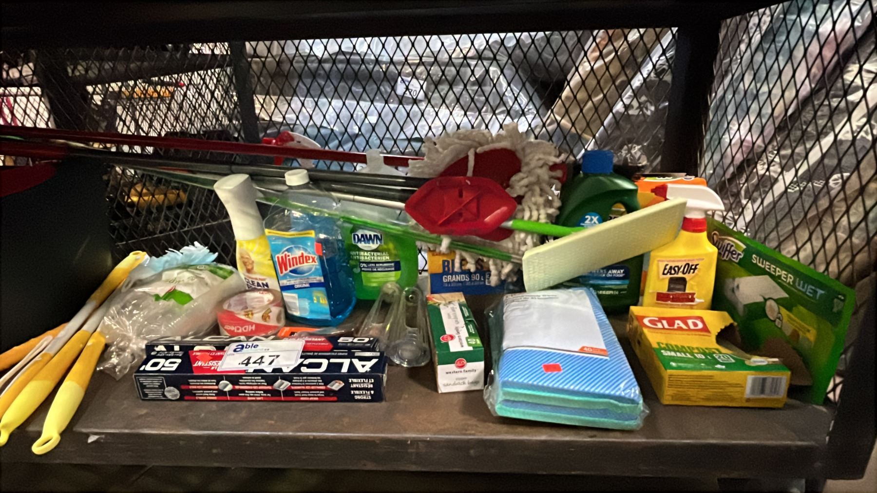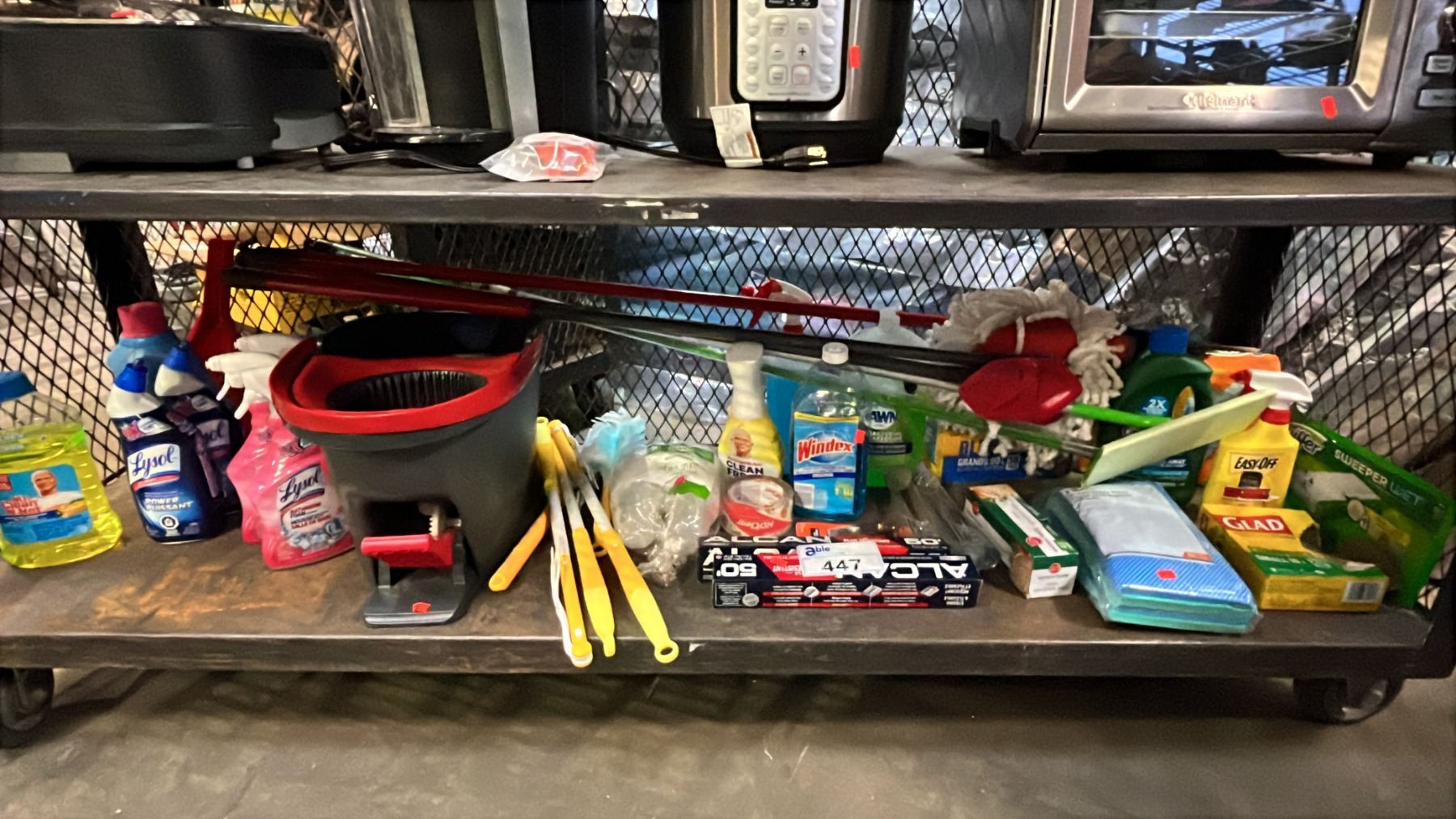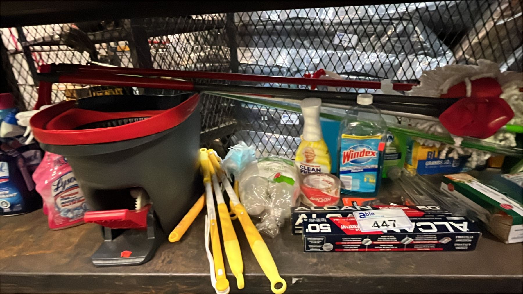 SHELF OF ALUMINUM FOIL & ASSORTED CLEANING PRODUCTS