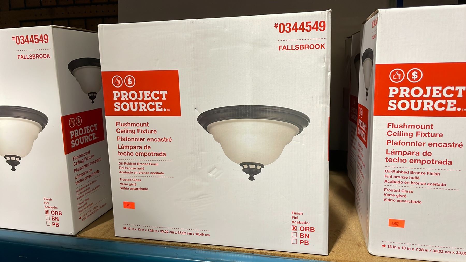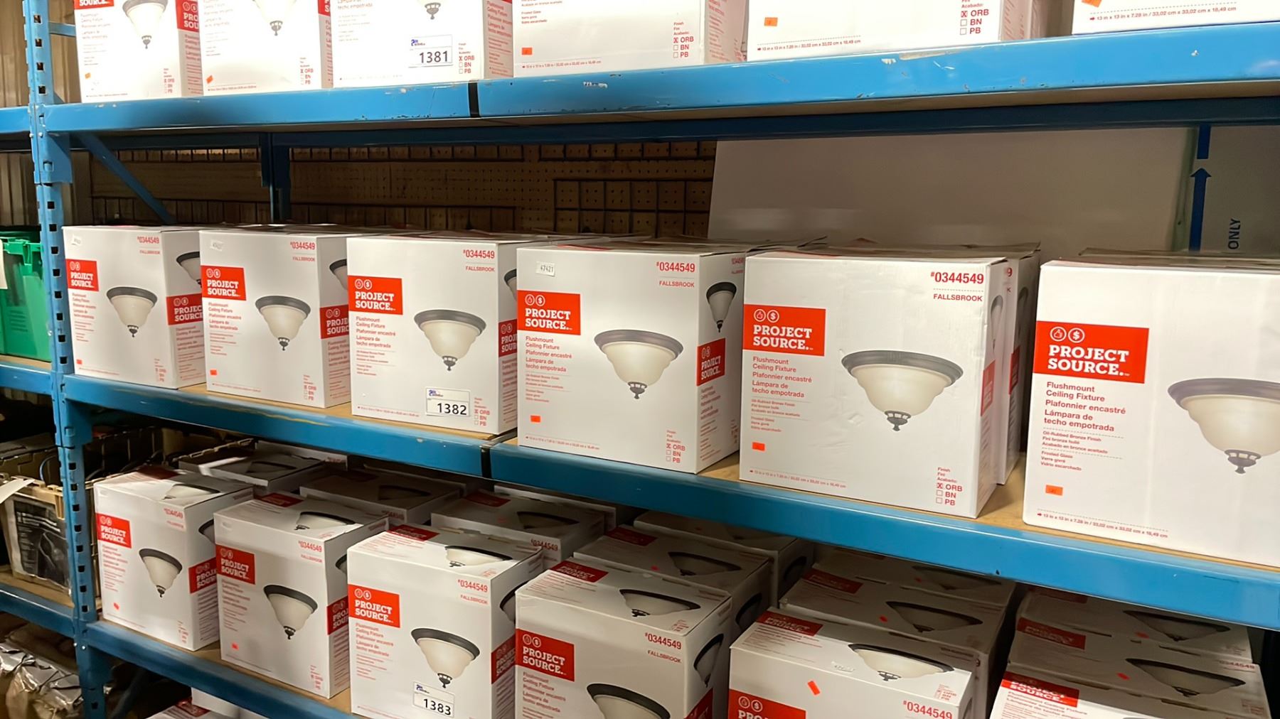 SHELF OF APPROXIMATELY 18 PROJECT SOURCE FLUSHMOUNT CEILING FIXTURES *MUST TAKE ALL*