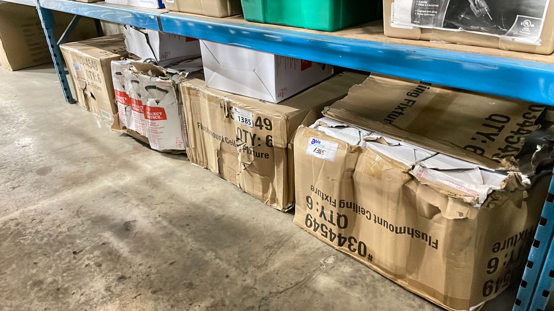 SHELF OF APPROXIMATELY 24 PROJECT SOURCE FLUSHMOUNT CEILING FIXTURES *MUST TAKE ALL, SOME DAMAGE*