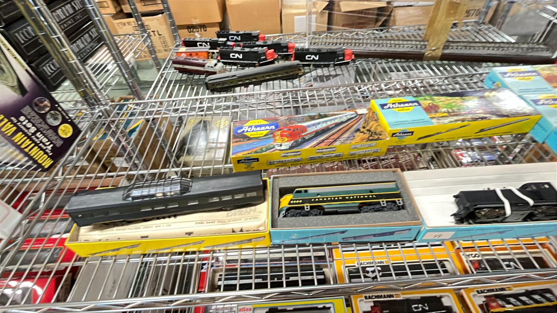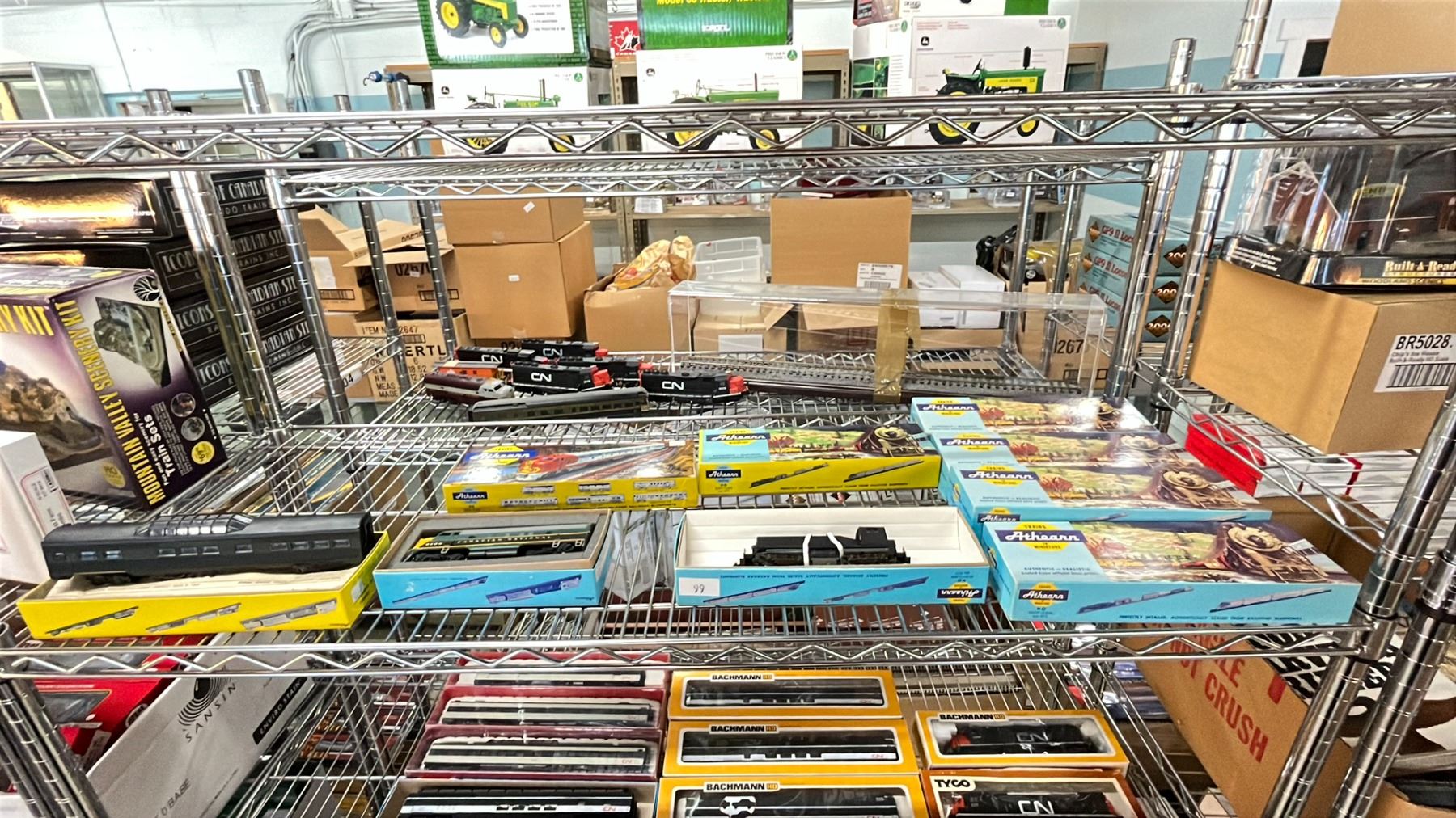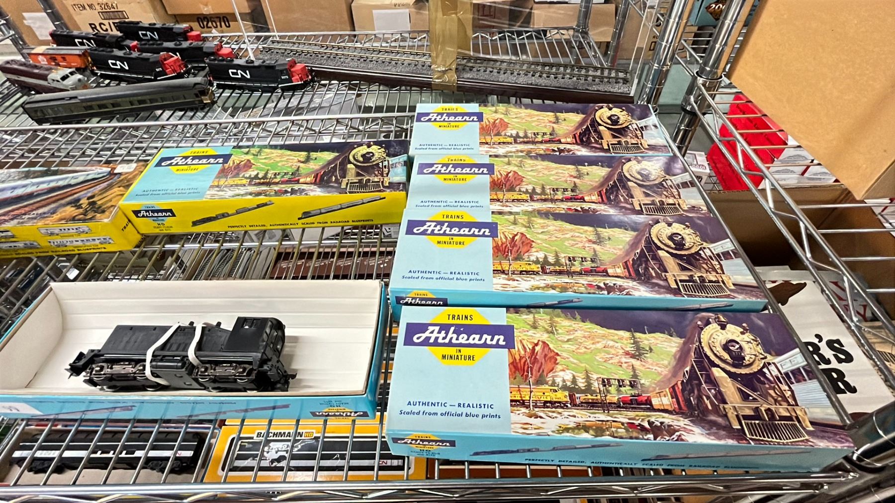 SHELF OF ASSORTED ATHEARN HO SCALE MODEL TRAINS