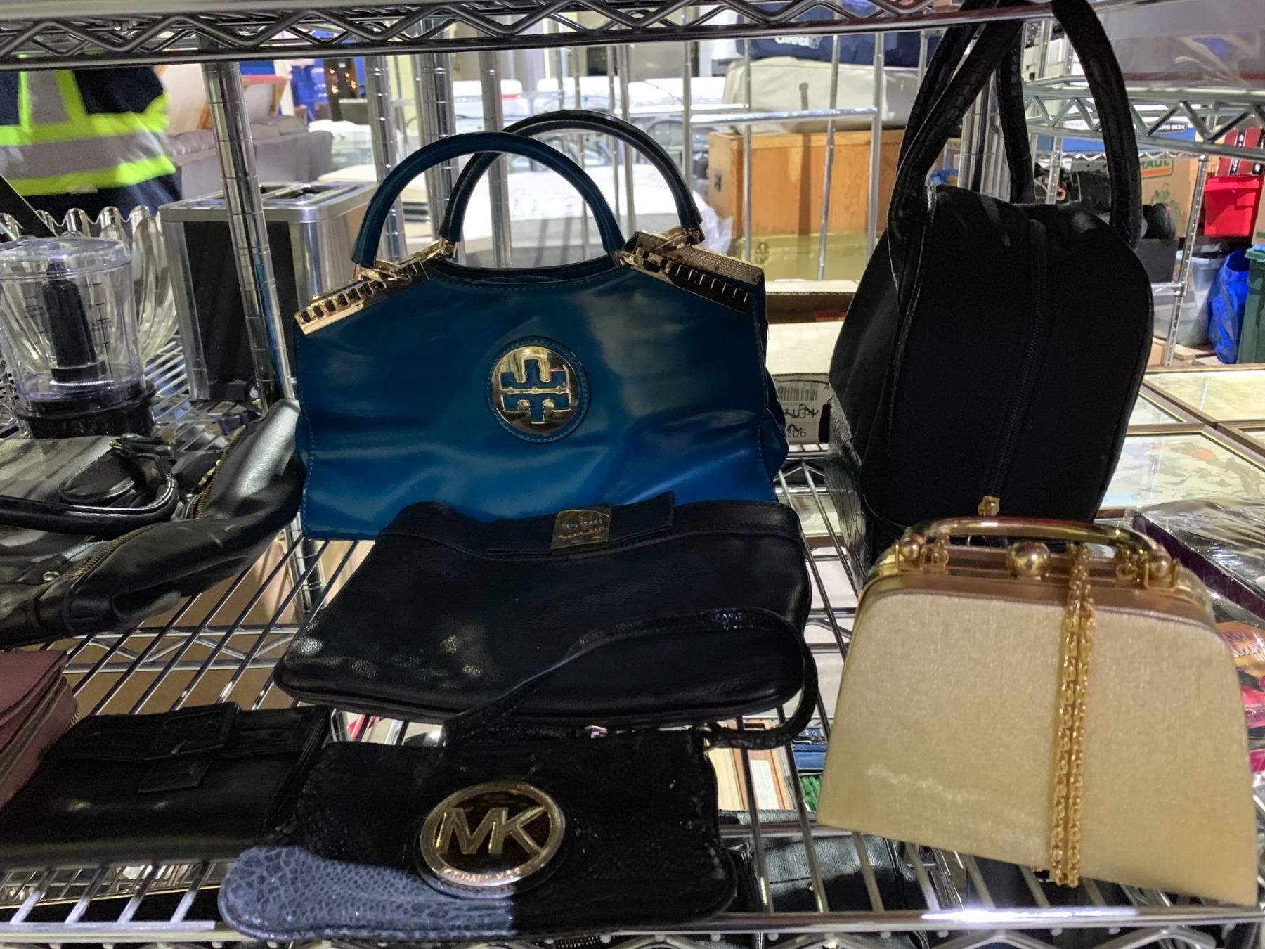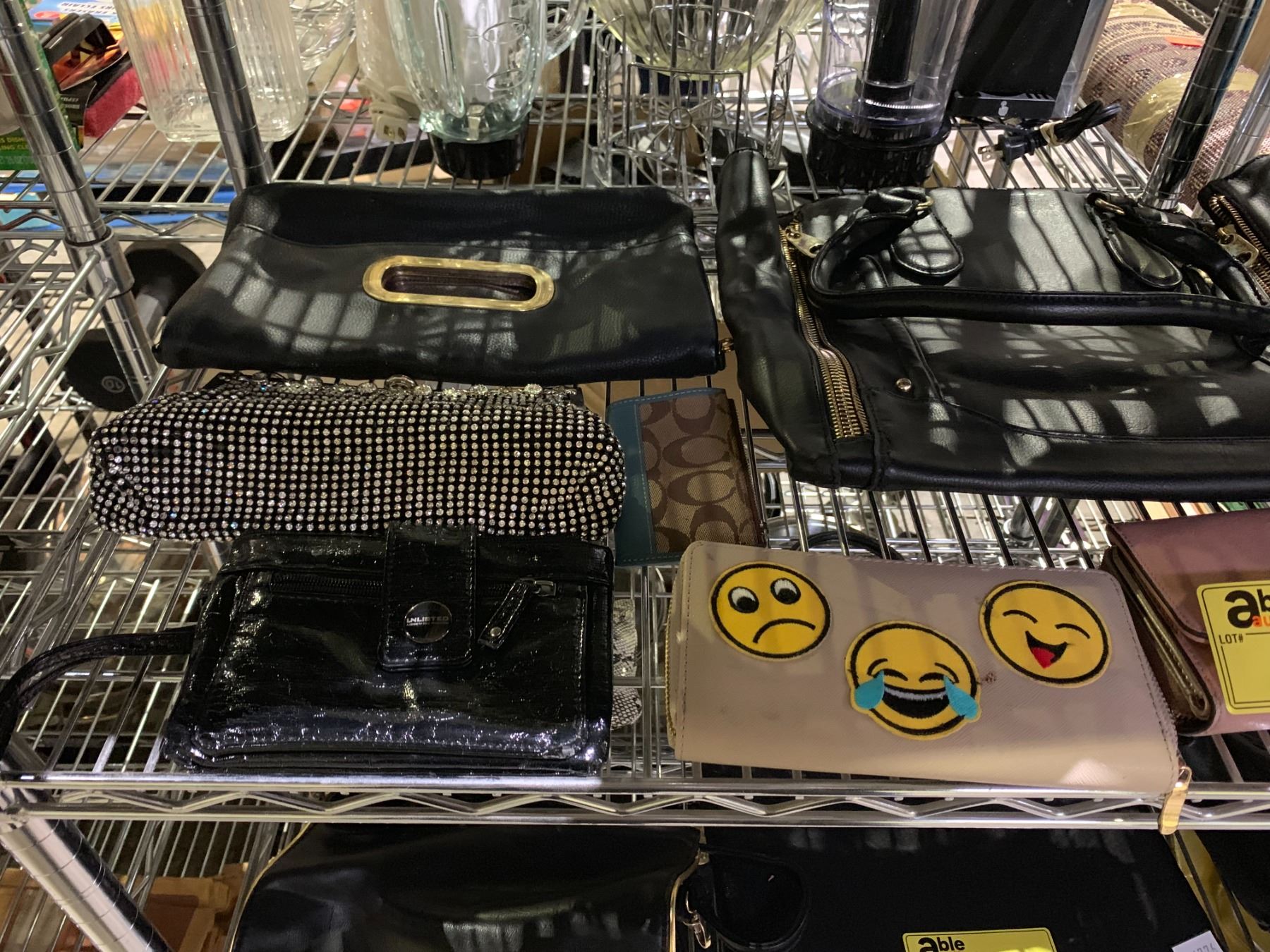 SHELF OF ASSORTED BAGS & CLUTCH PURSES